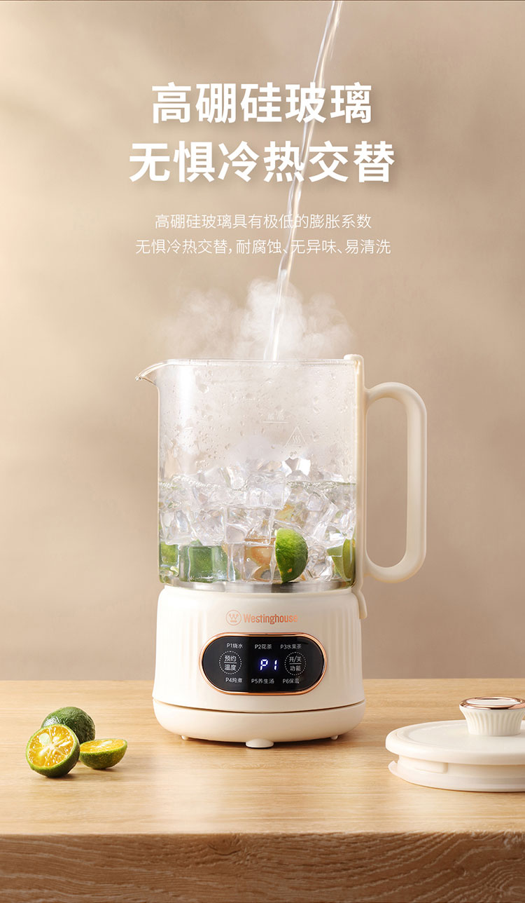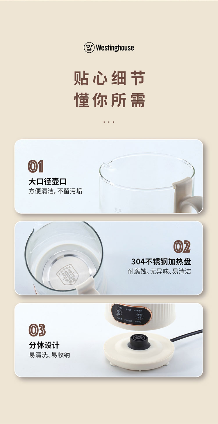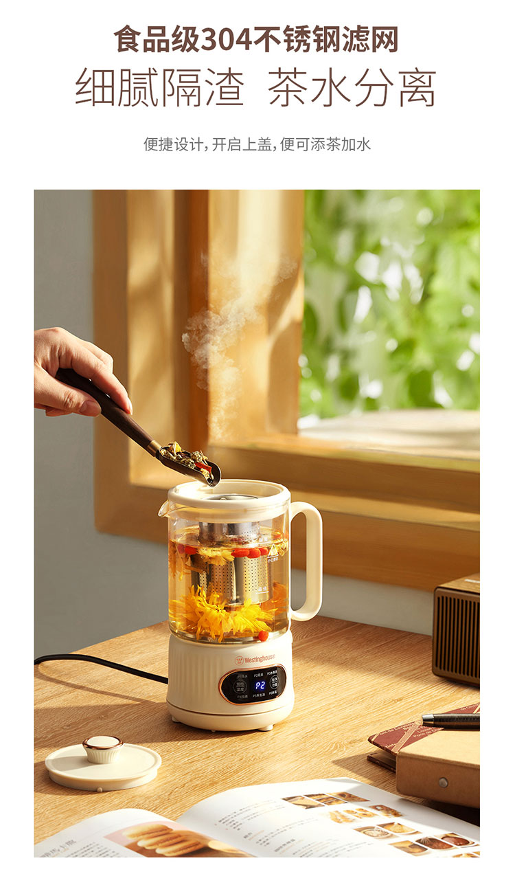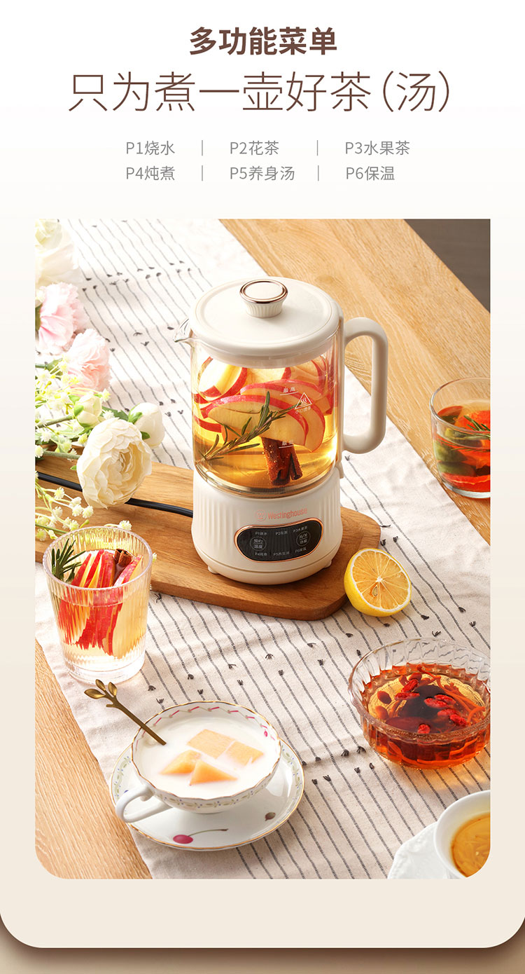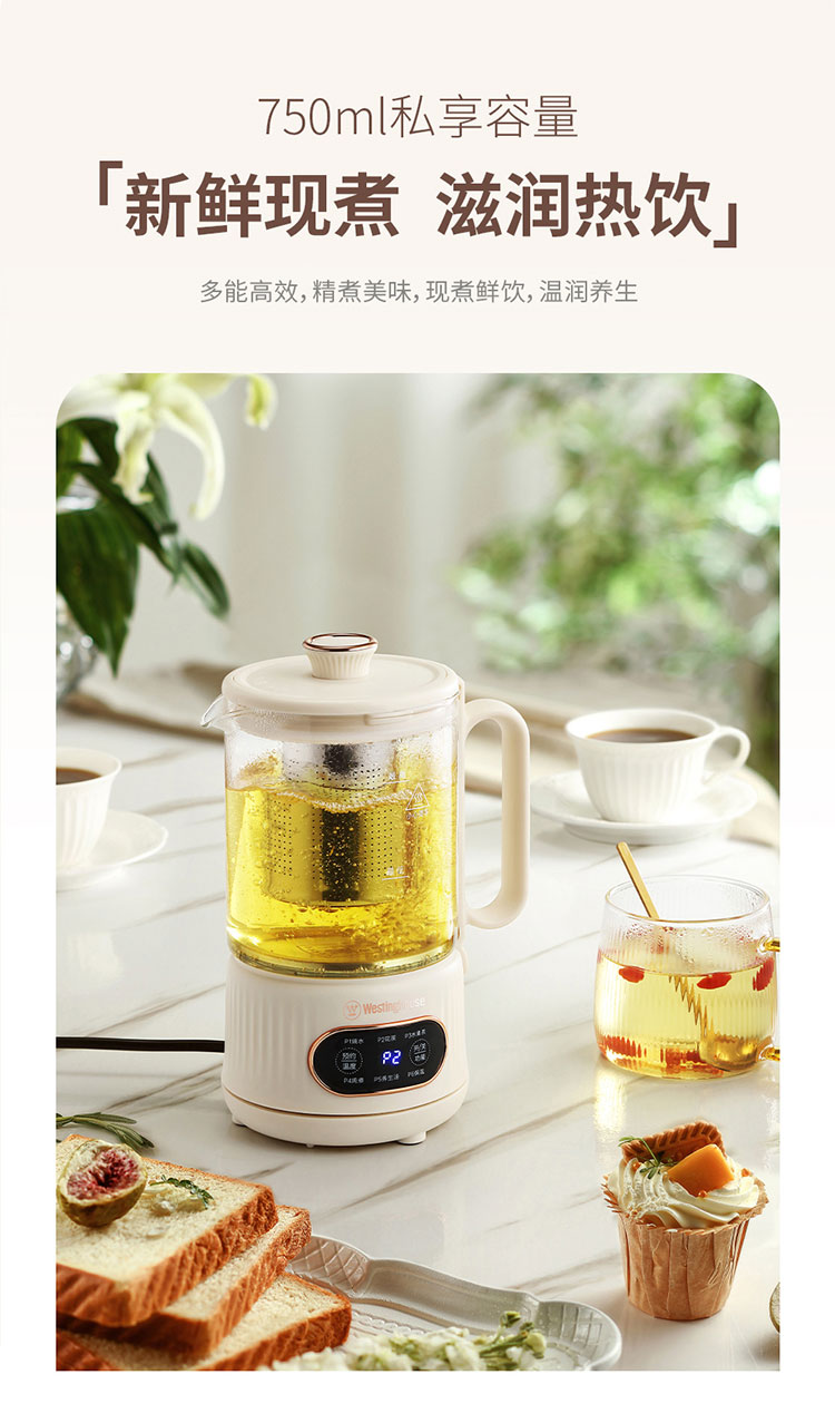 (世星阳光)+WY西屋 养生壶 750ml 杏仁白 WEK075 一人独饮 智能菜单多功能轻巧便携 易收纳 随时随地享一份润养滋味 便携容量 恒温暖饮 一壶多能