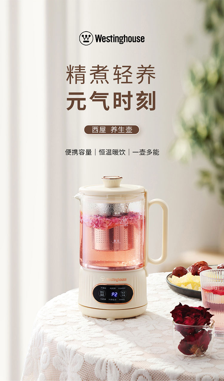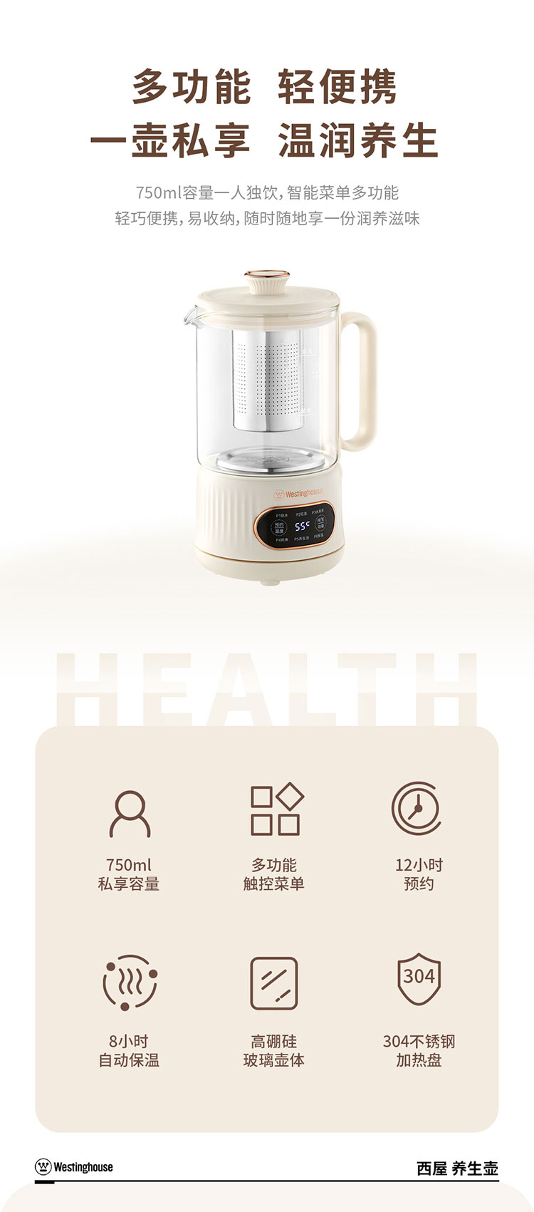 商品名称:(世星阳光)+WY西屋 养生壶 750ml 杏仁白 WEK075 一人独饮 智能菜单多功能轻巧便携 易收纳 随时随地享一份润养滋味 便携容量 恒温暖饮 一壶多能