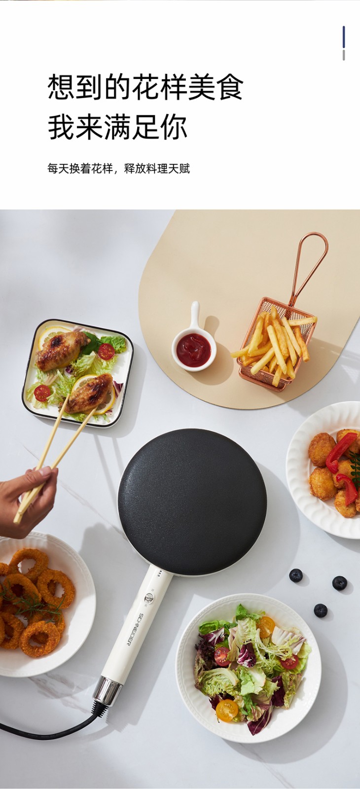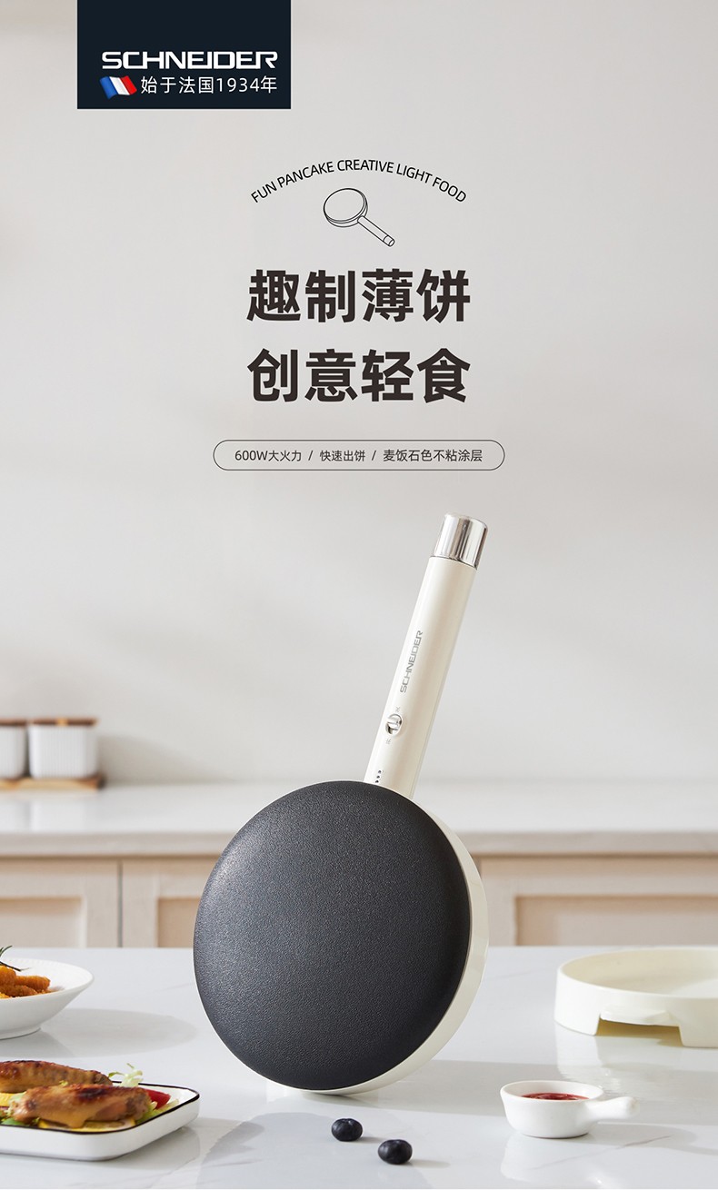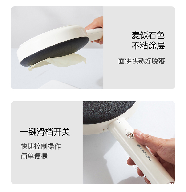 (世星阳光)施耐德 3D球形曲面多功能薄饼机 SWK-XBJL1511 麦饭石色不粘涂层早餐机