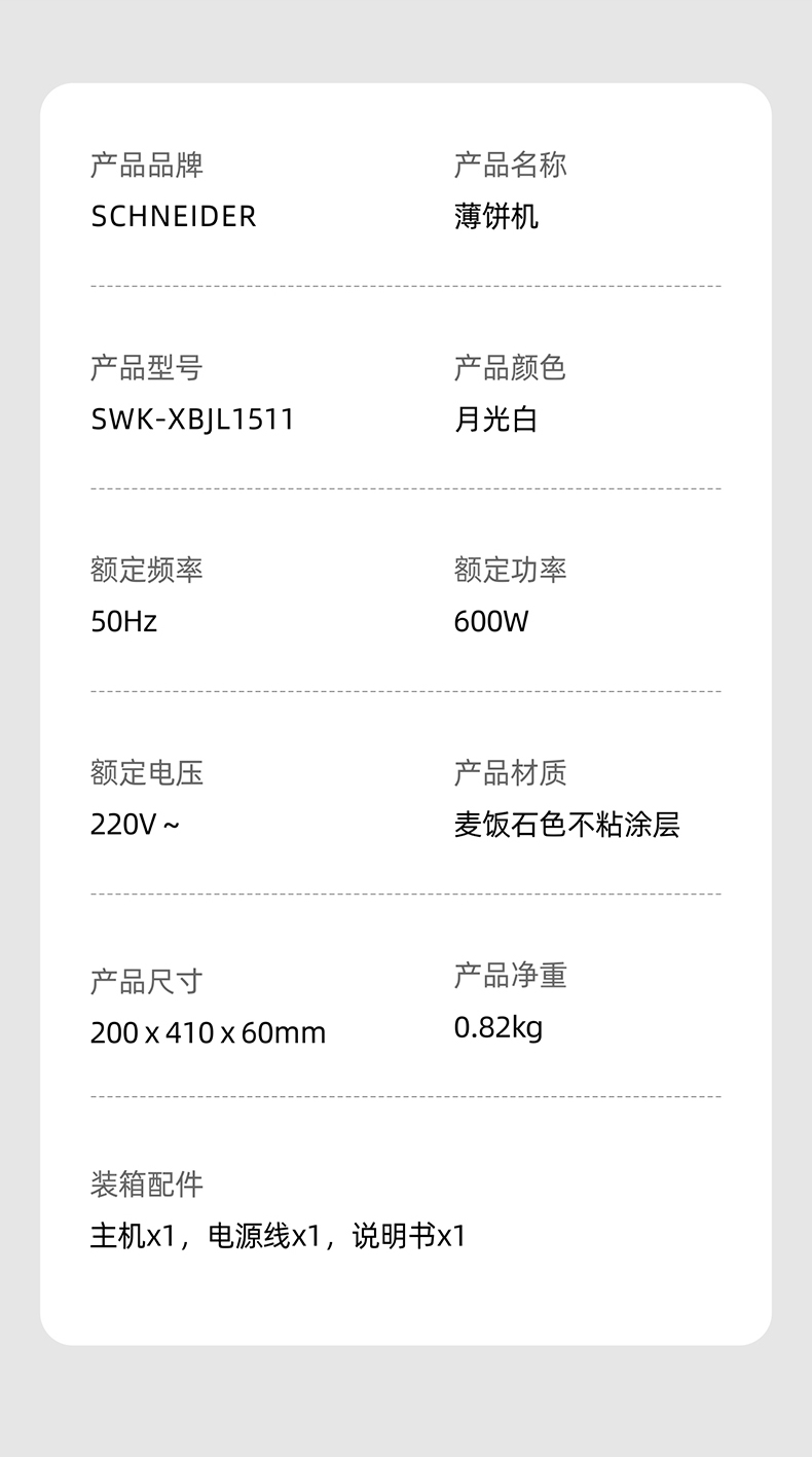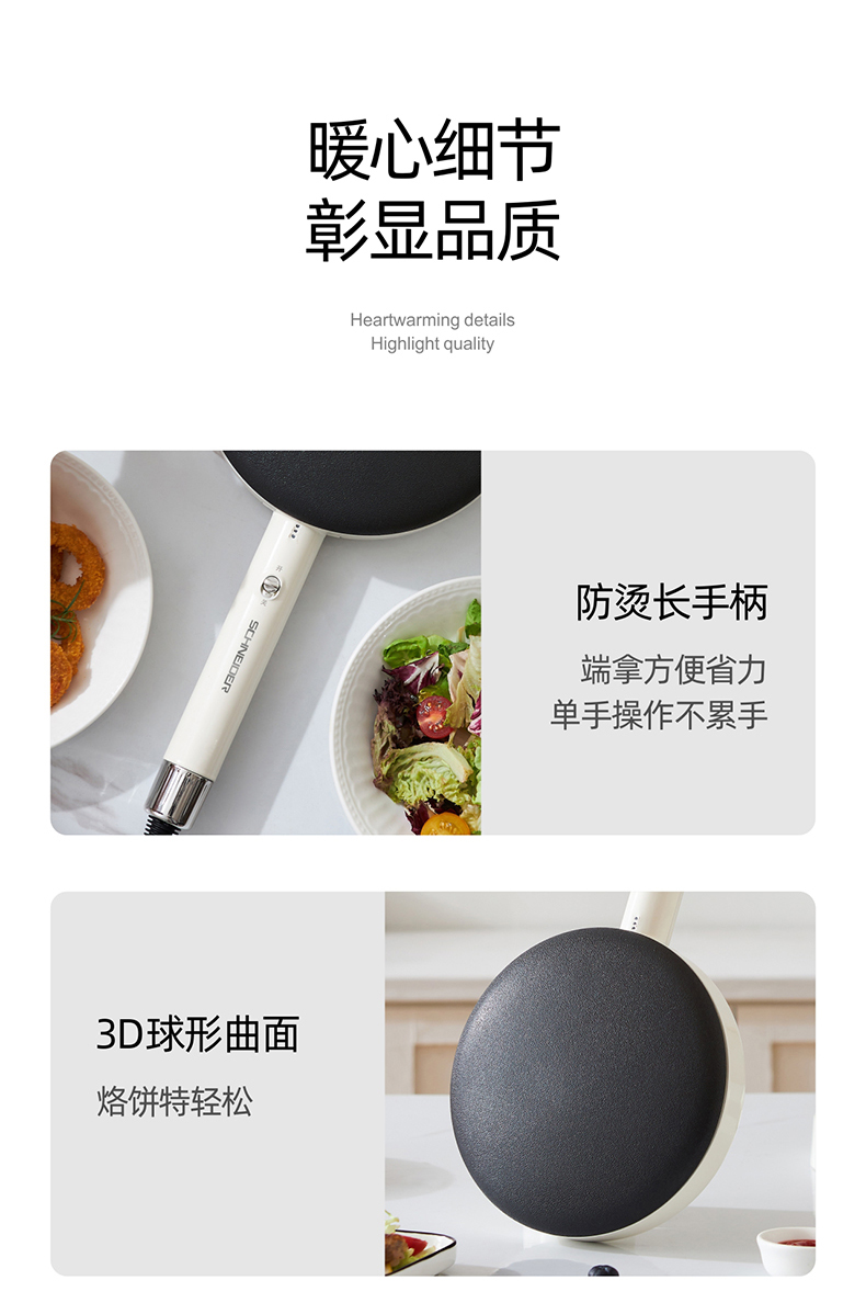 商品名称:(世星阳光)施耐德 3D球形曲面多功能薄饼机 SWK-XBJL1511 麦饭石色不粘涂层早餐机