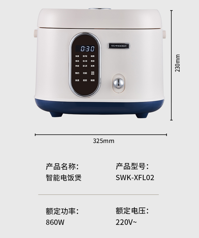 商品名称:(世星阳光)施耐德 智能饭煲 4L SWK-XFL02 食品级 精巧容量每日新鲜煮饭