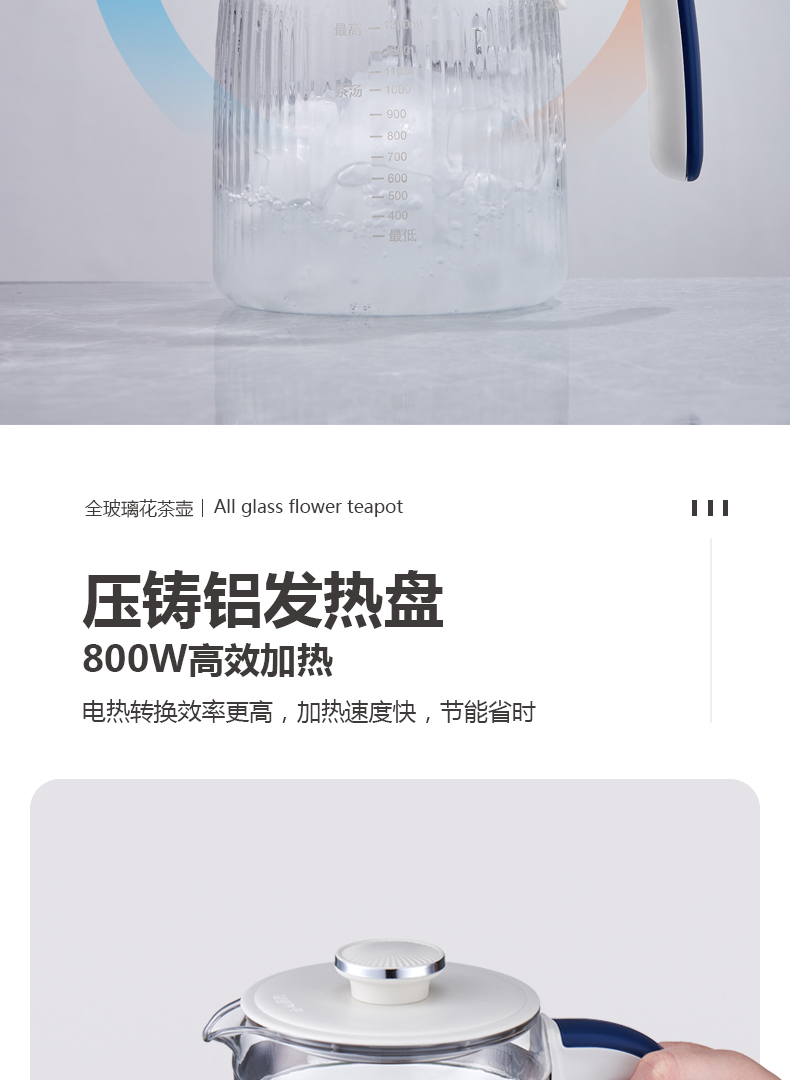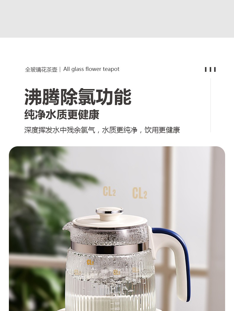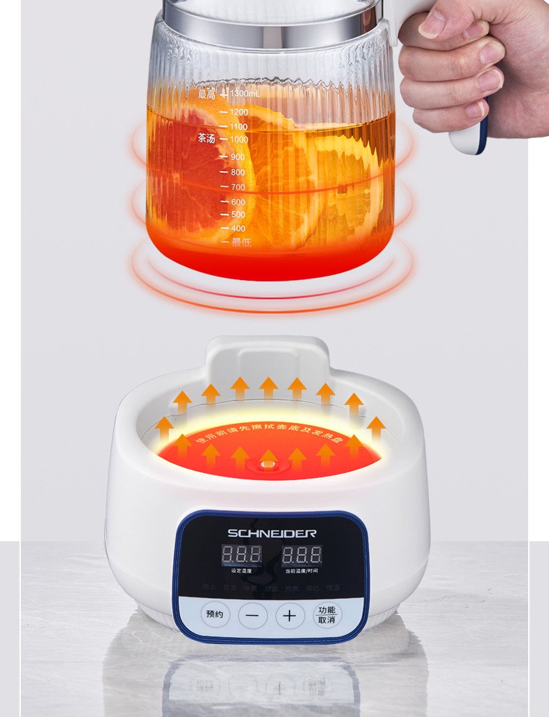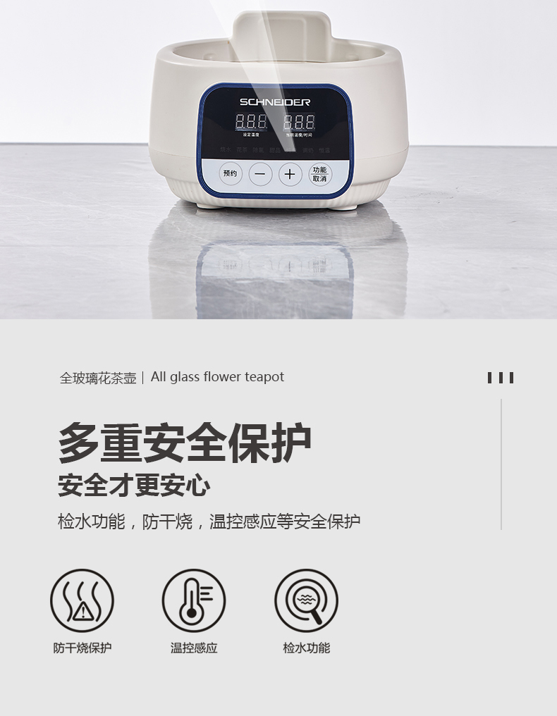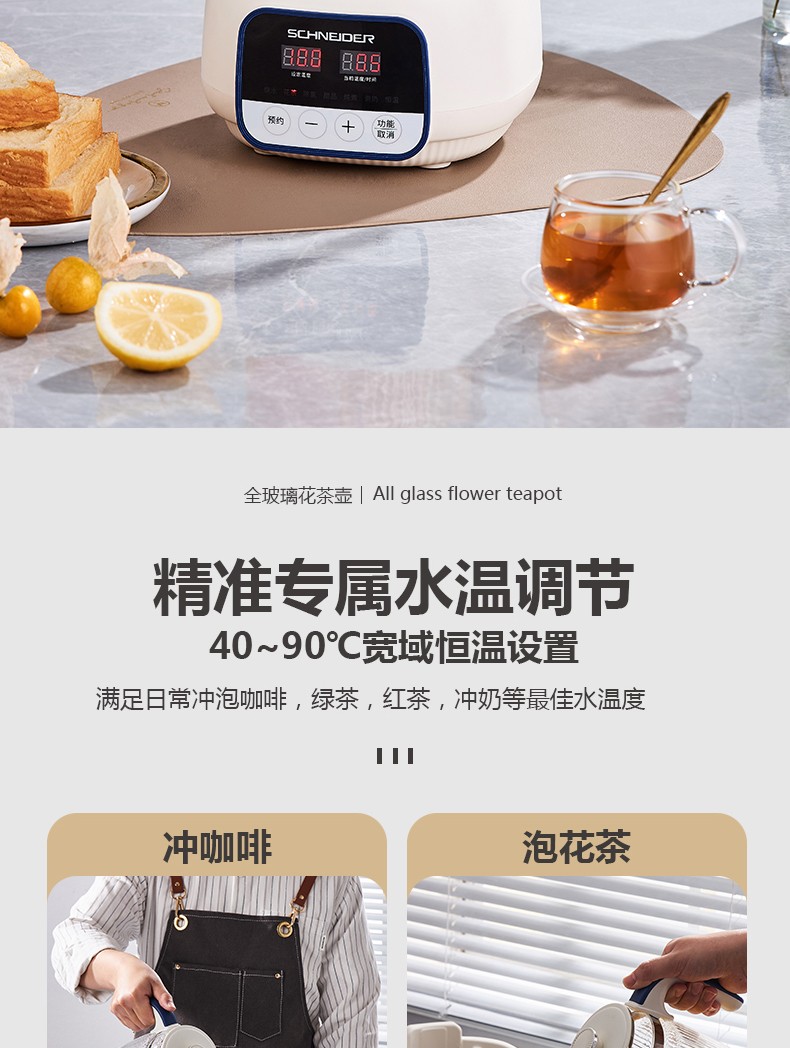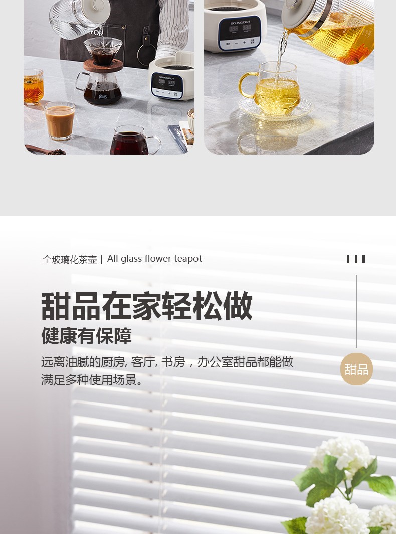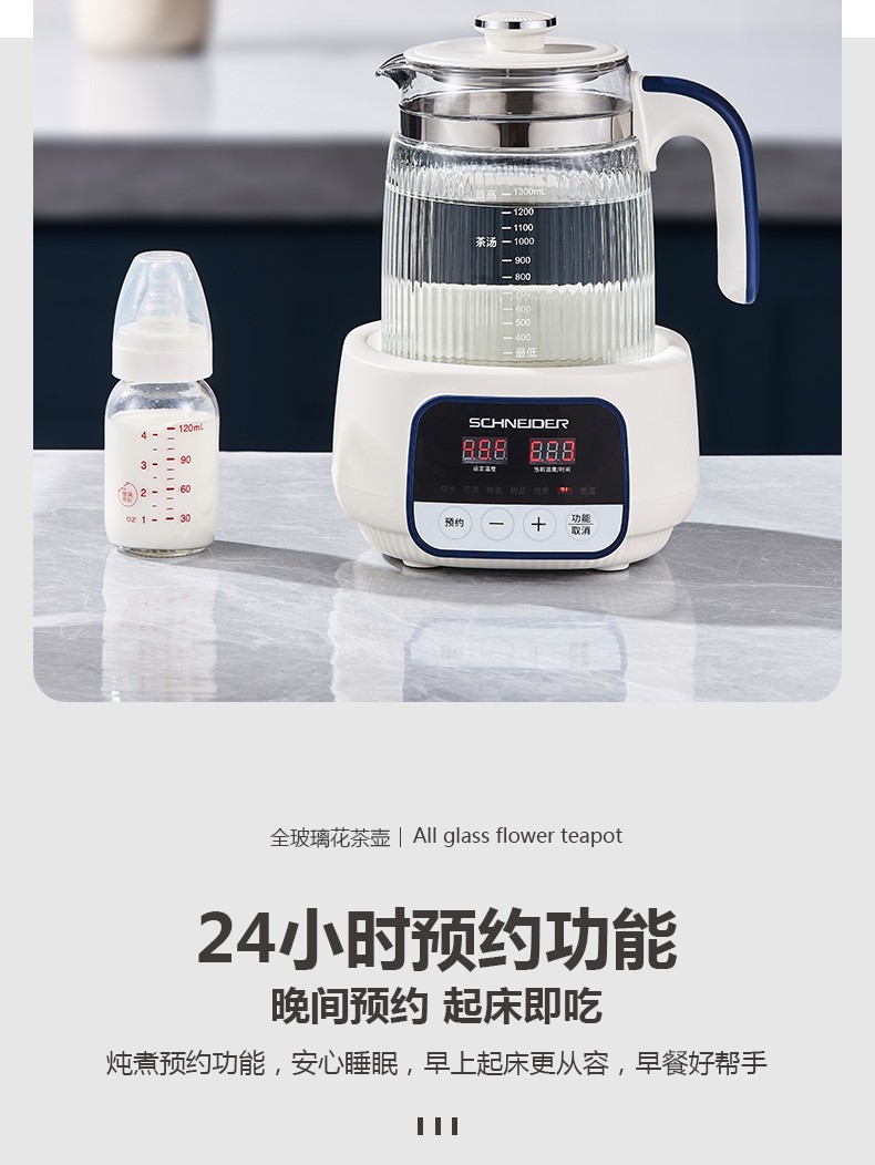 (世星阳光)施耐德全玻璃一体壶身花茶壶 SWK-XHSL03 1.3L 七大功能选择 精控水温