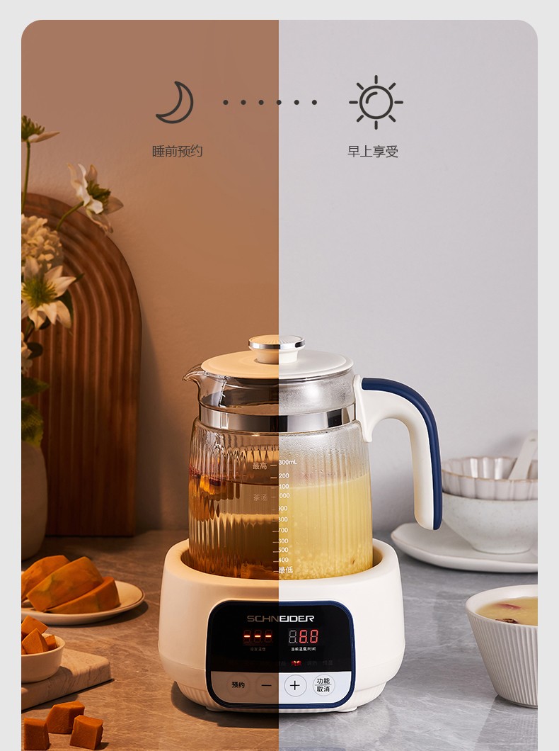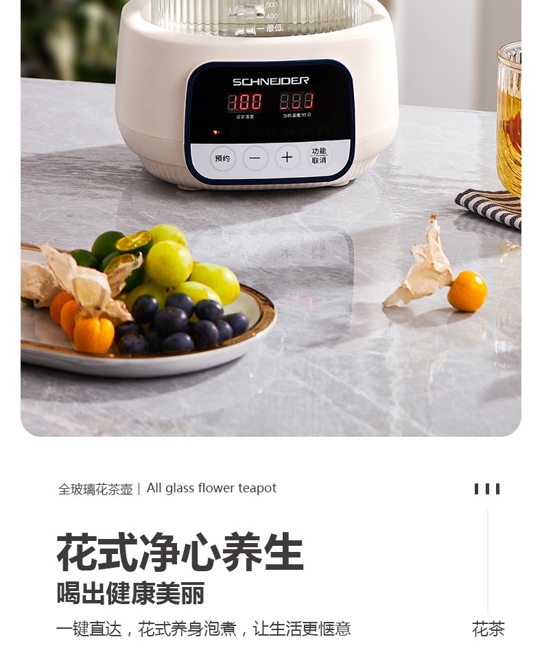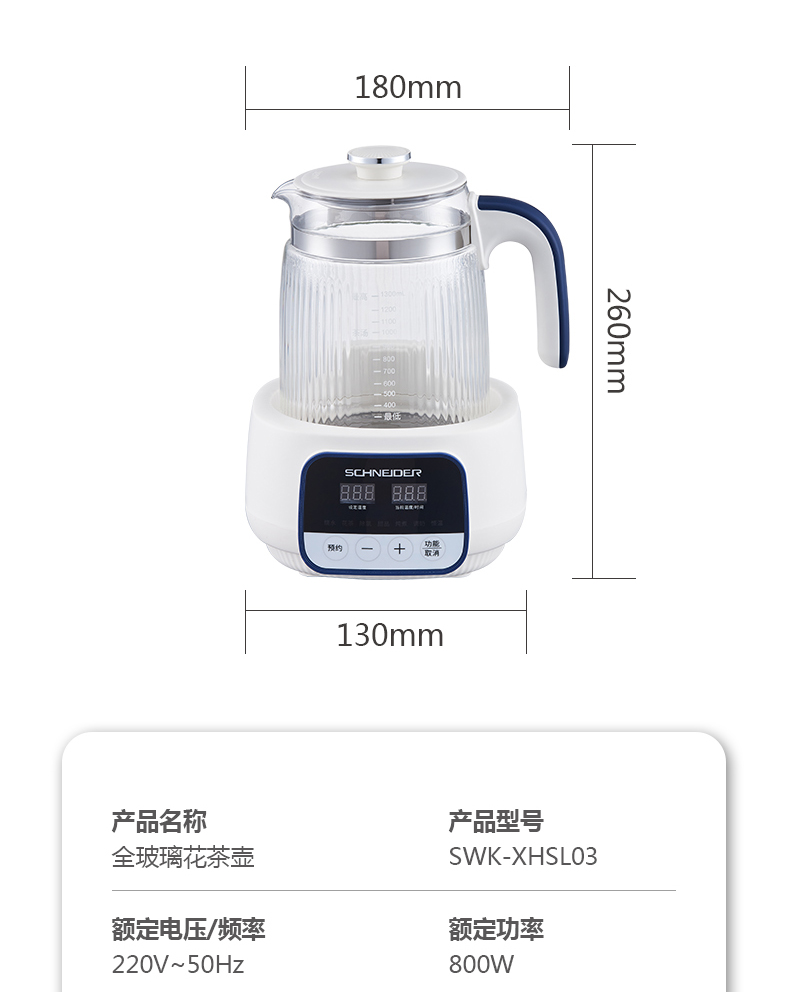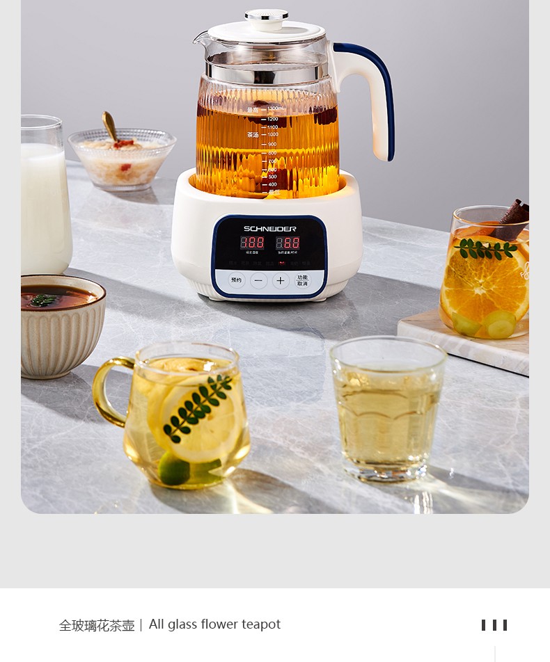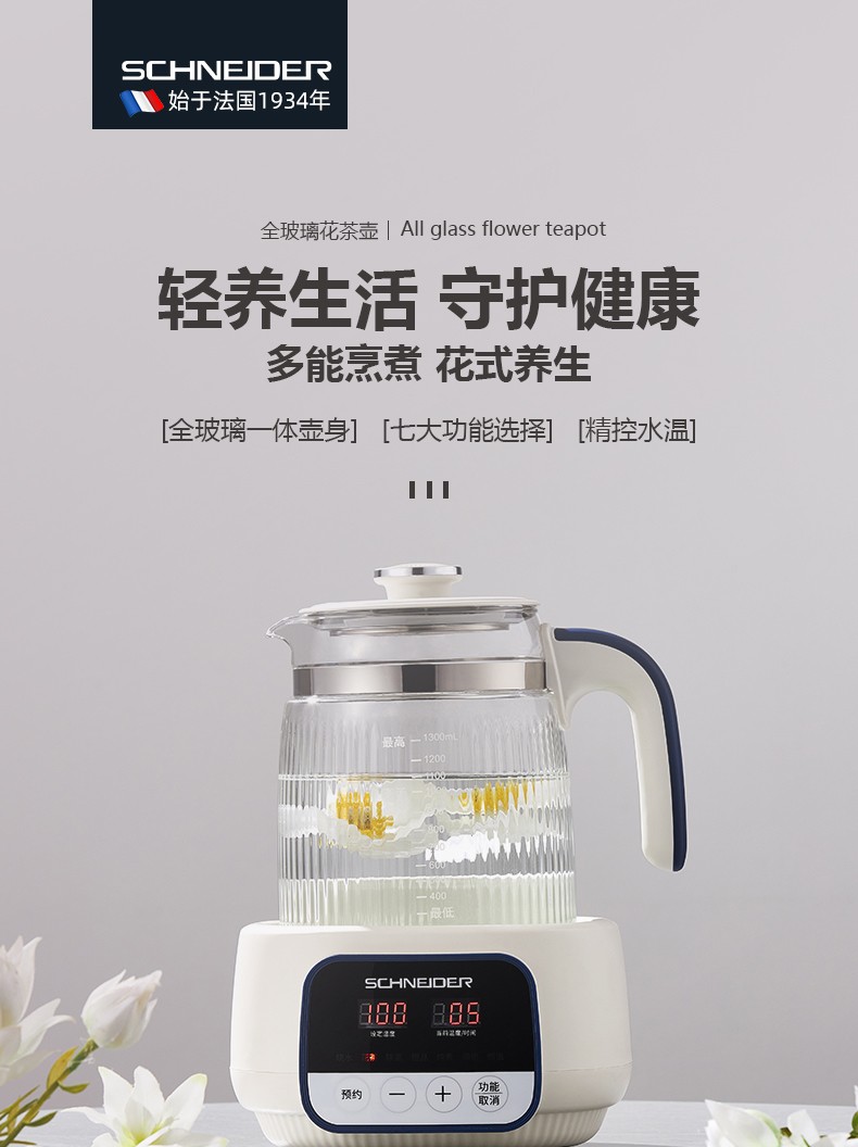 商品名称:(世星阳光)施耐德全玻璃一体壶身花茶壶 SWK-XHSL03 1.3L 七大功能选择 精控水温