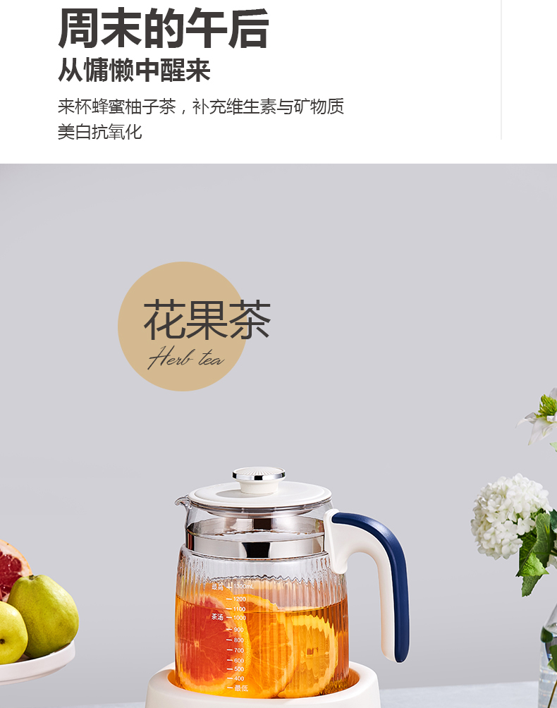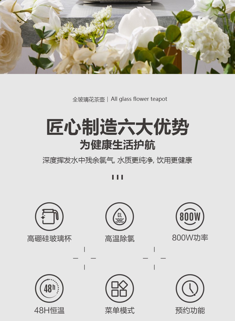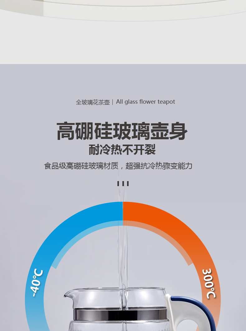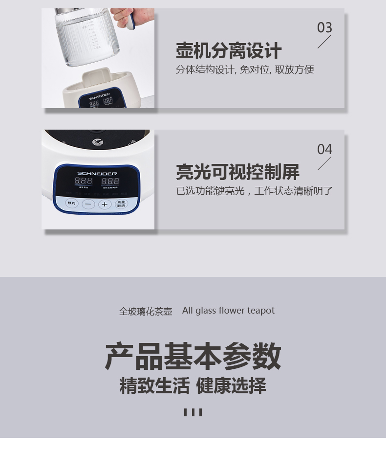 商品名称:(世星阳光)施耐德全玻璃一体壶身花茶壶 SWK-XHSL03 1.3L 七大功能选择 精控水温