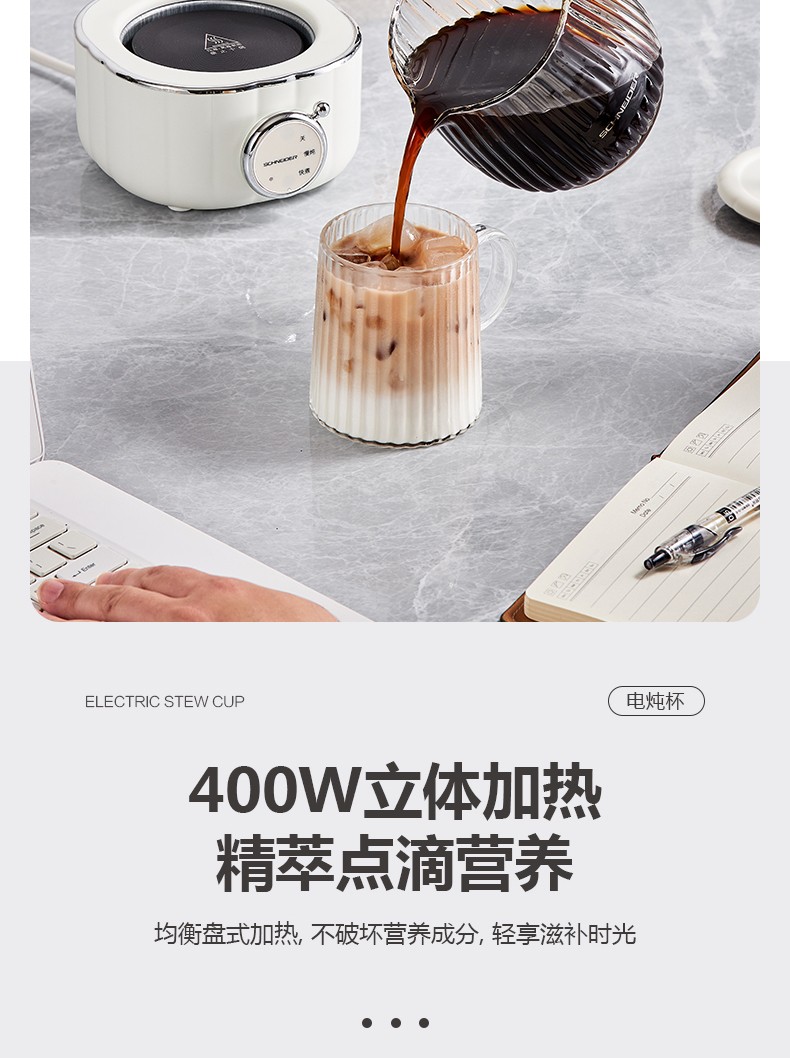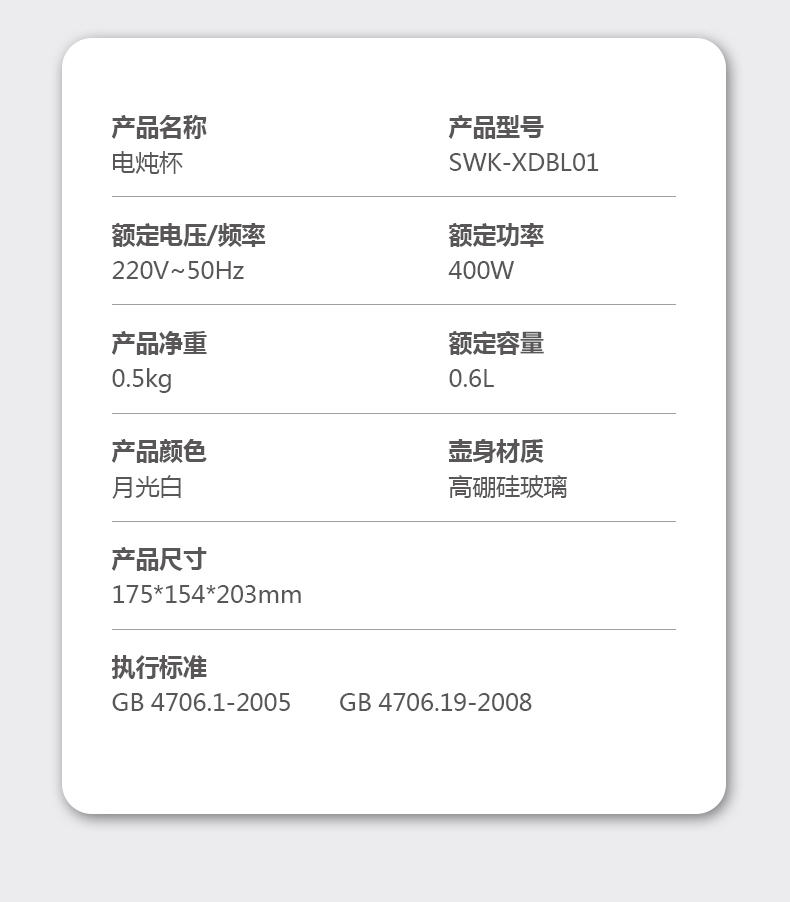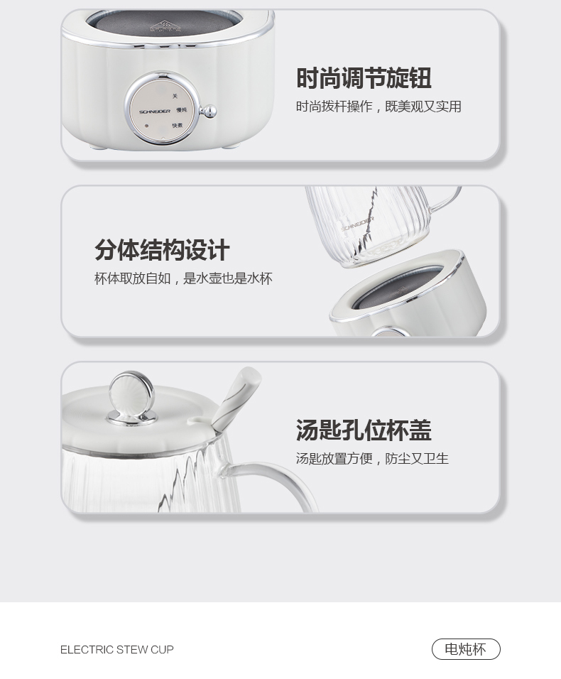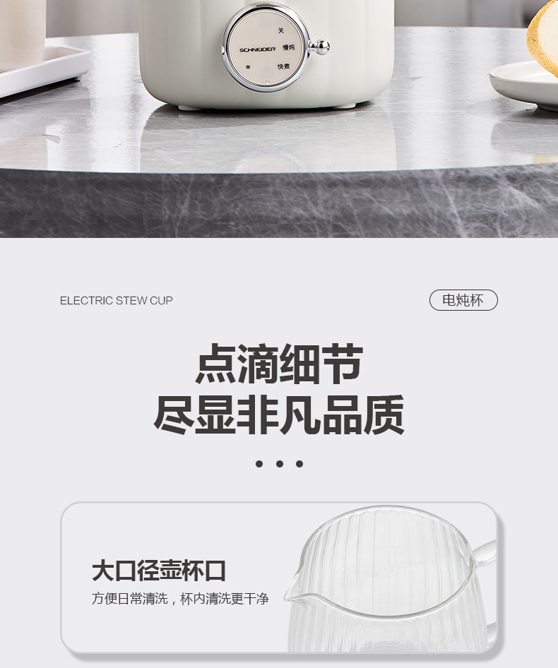 商品名称:(世星阳光)施耐德 电炖杯 SWK-XDBL01 0.6L 高硼硅全玻璃 一人精致私享 办公桌上的养生壶 滋润私饮触手可得