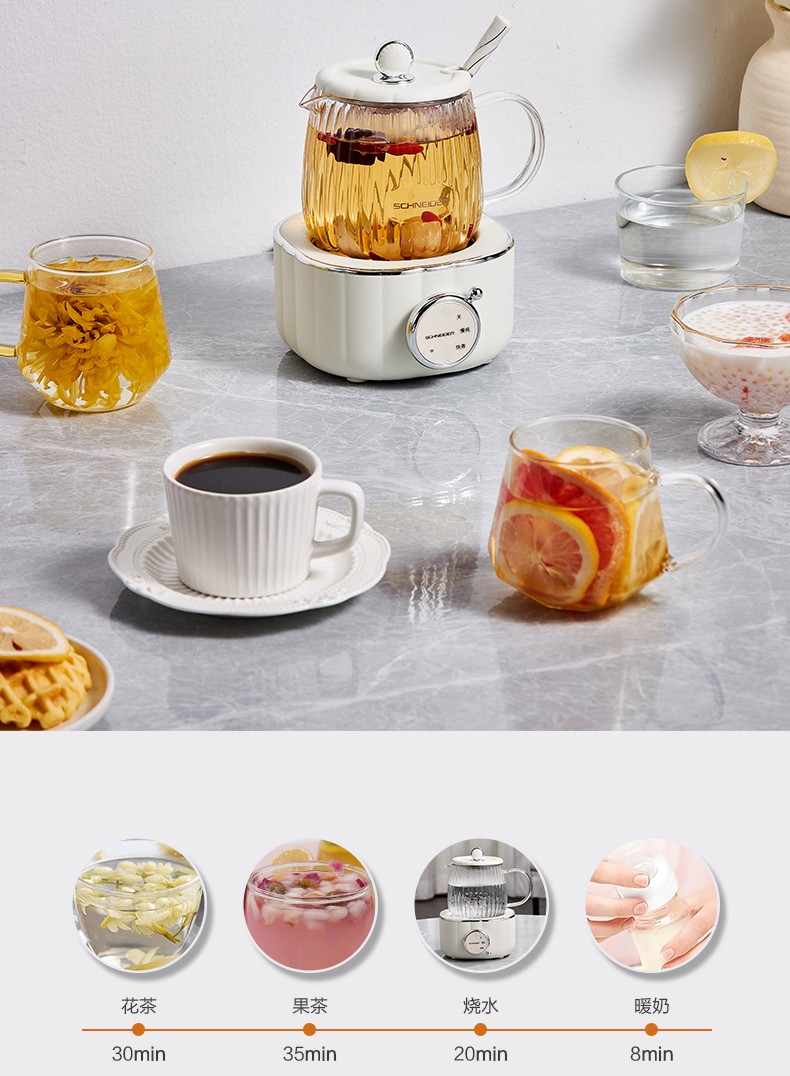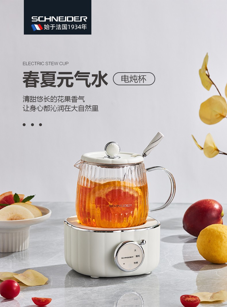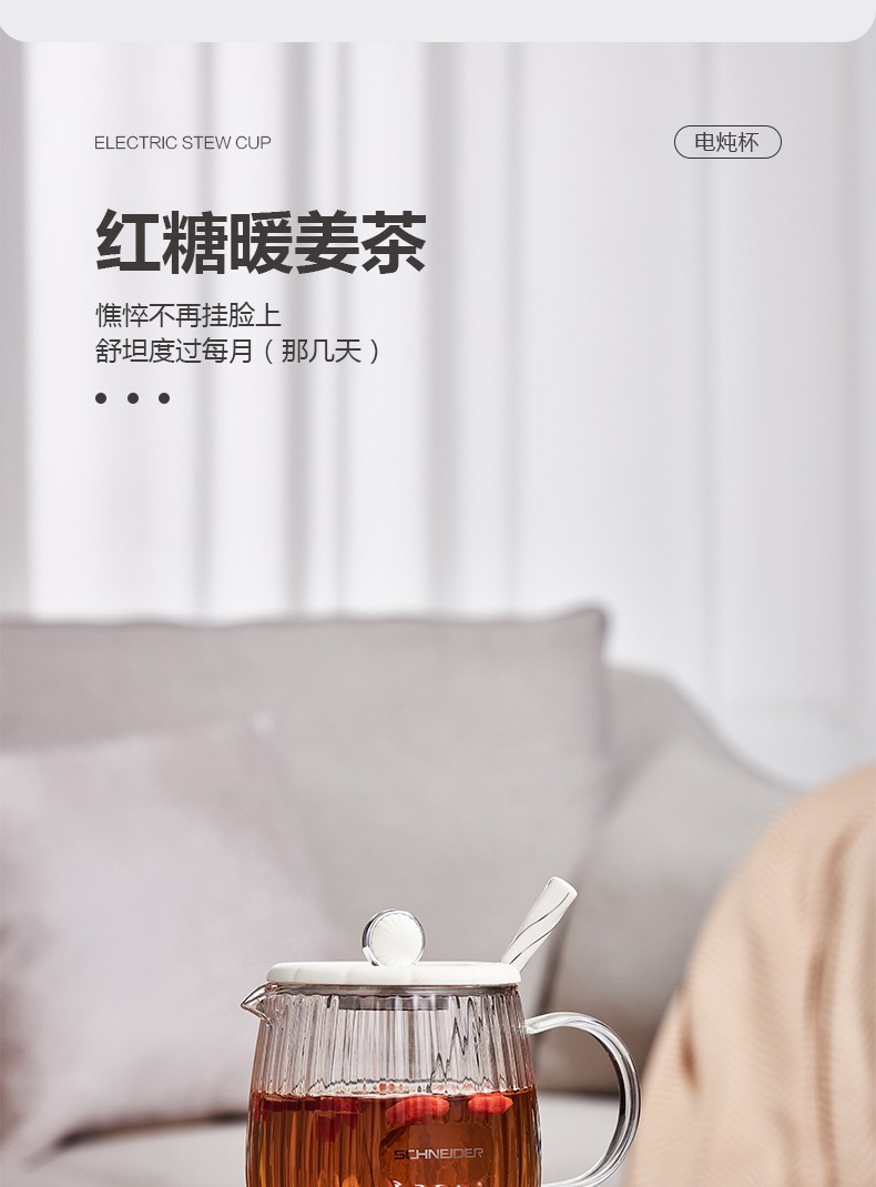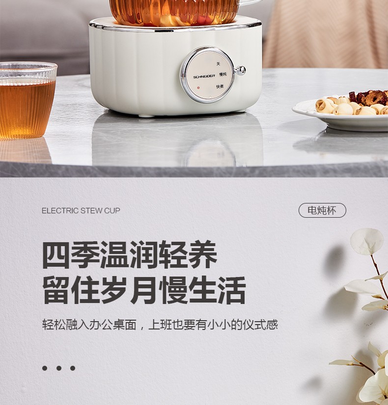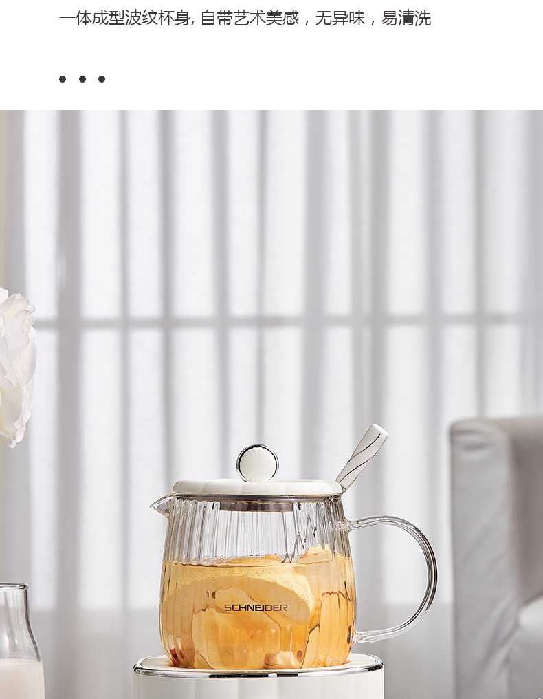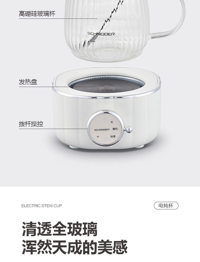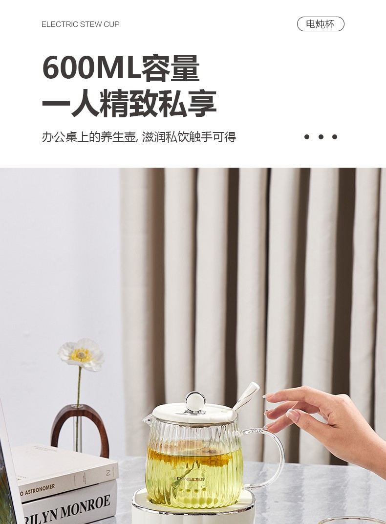 (世星阳光)施耐德 电炖杯 SWK-XDBL01 0.6L 高硼硅全玻璃 一人精致私享 办公桌上的养生壶 滋润私饮触手可得