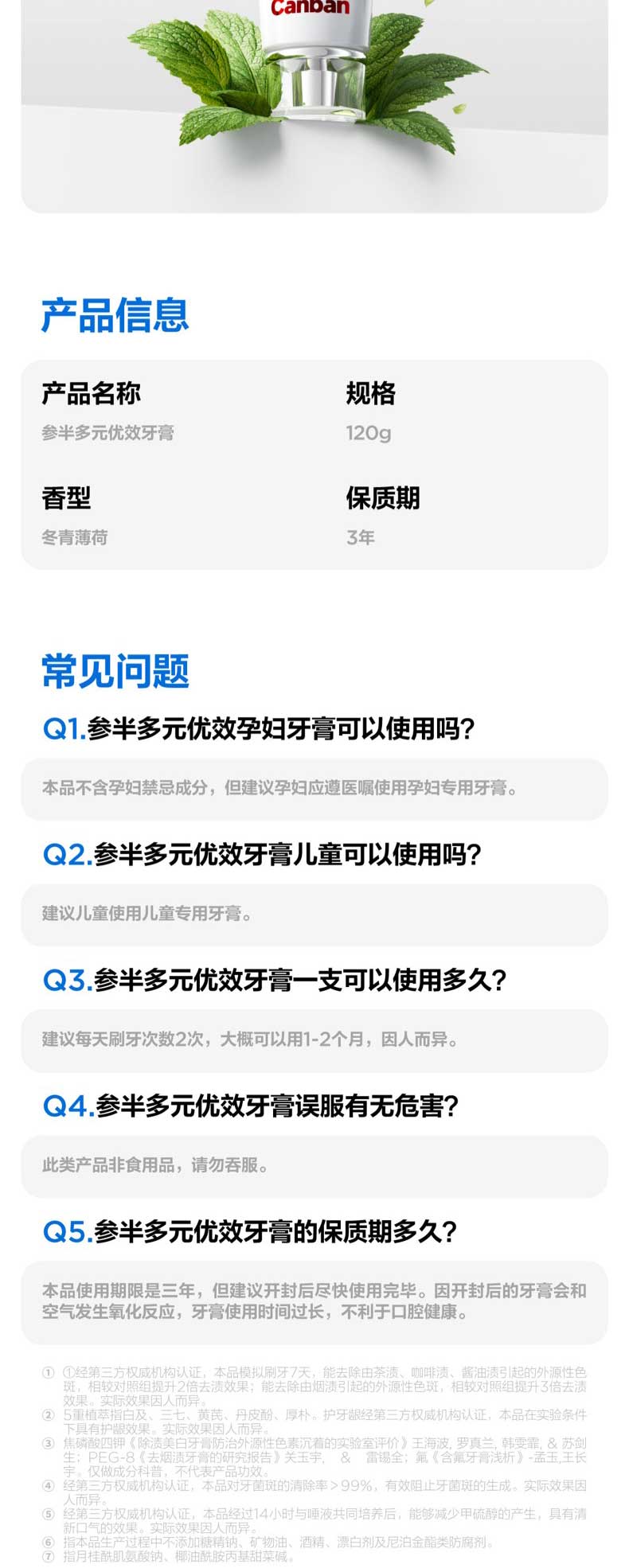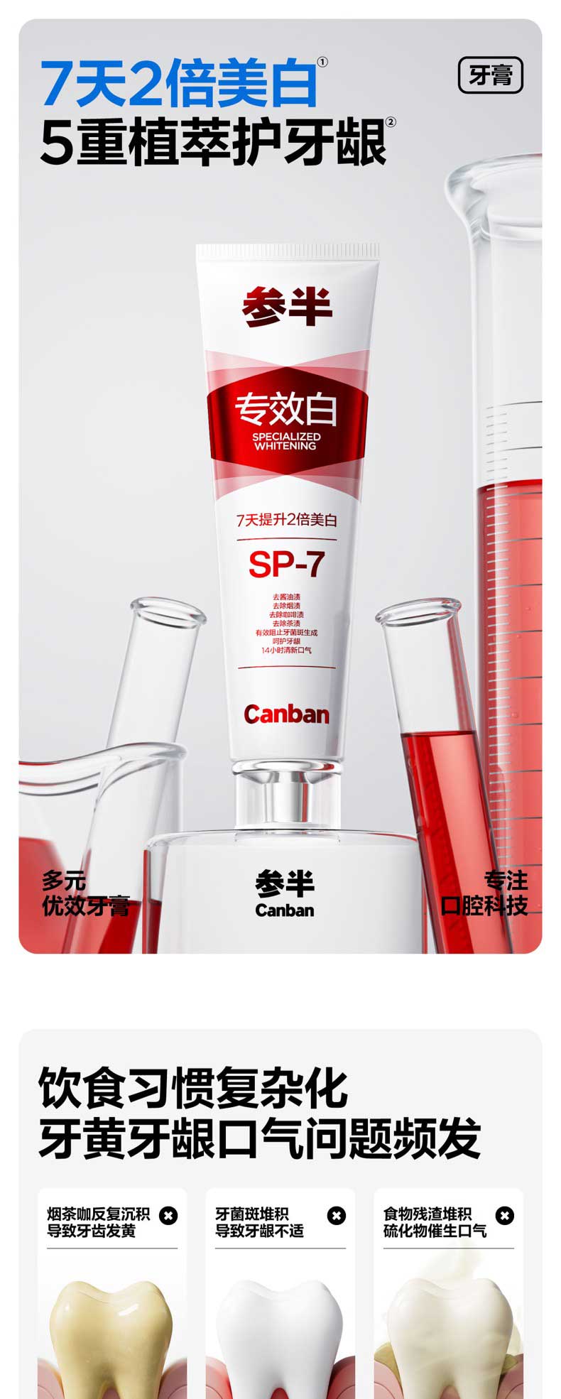 参半 多元优效牙膏 专效白: