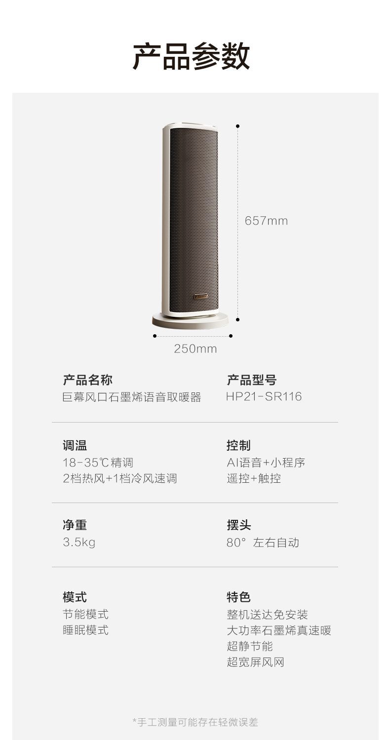 商品名称:(巨邦佑)T+艾美特石墨烯立式取暖器HP21-SR116新款暖风机家用节能省电速热语音遥控