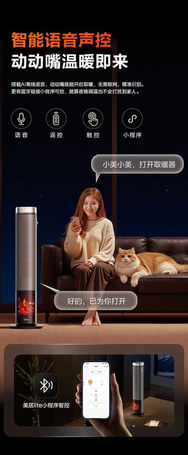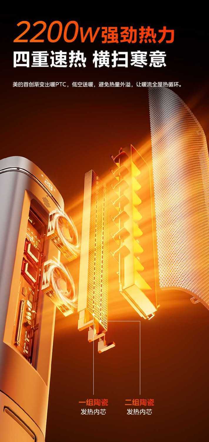 (巨邦佑)T+美的暖风机HFS22LM电暖器电烤火炉PTC发热倾倒断电摇头速热取暖器