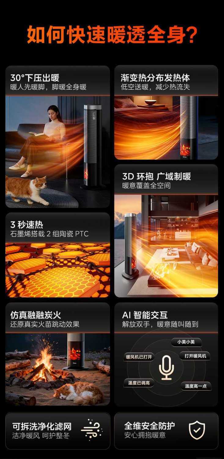 商品名称:(巨邦佑)T+美的暖风机HFS22LM电暖器电烤火炉PTC发热倾倒断电摇头速热取暖器