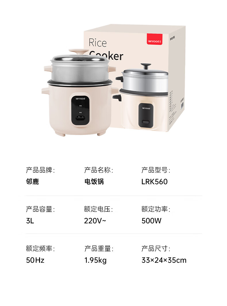 商品名称:(巨邦佑)BJ+邻鹿 豪华电饭锅 3L LRK-560 电饭煲锅家用大容量不粘内胆