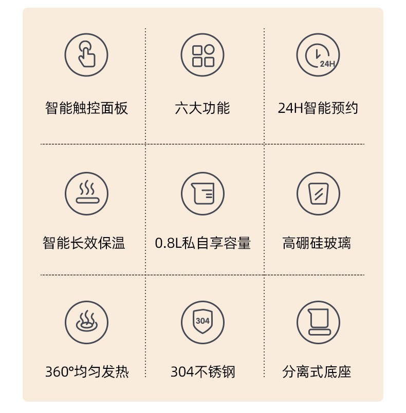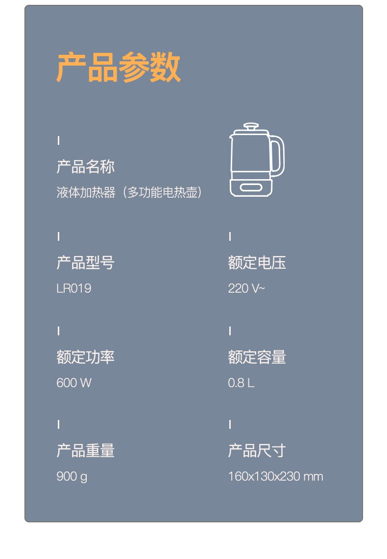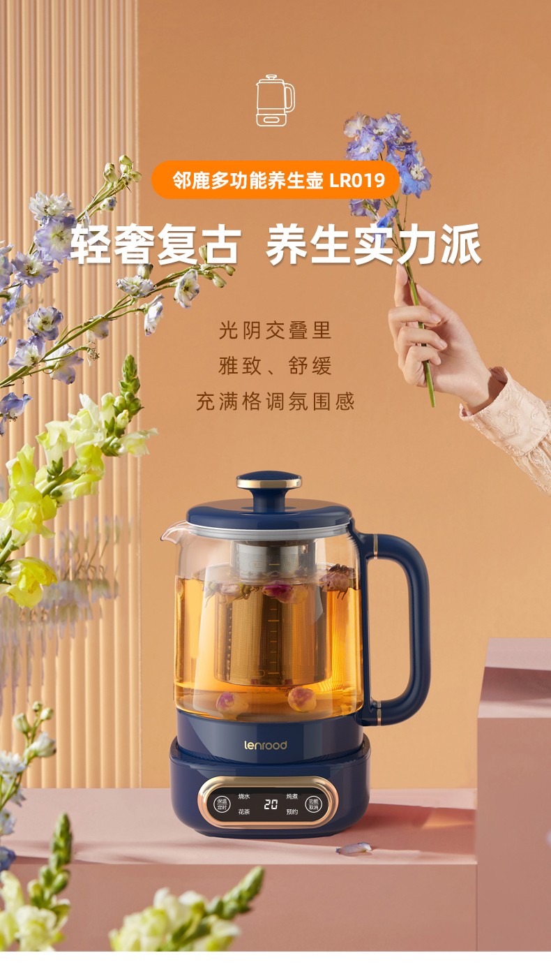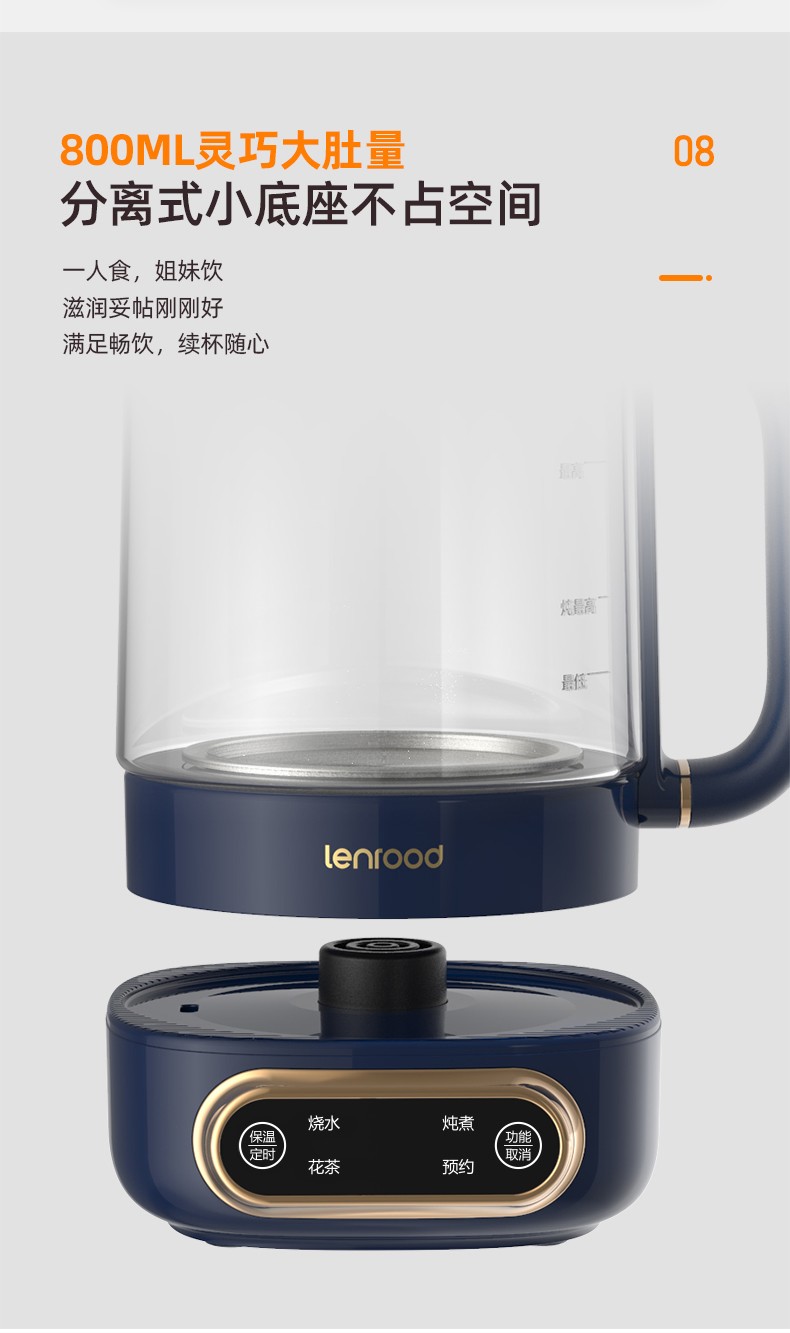 商品名称:(巨邦佑)BJ+邻鹿 mini智能养生壶 0.8L LR-019 迷你多功能电热水壶花茶壶办公室玻璃煮茶壶24小时预约烧水壶