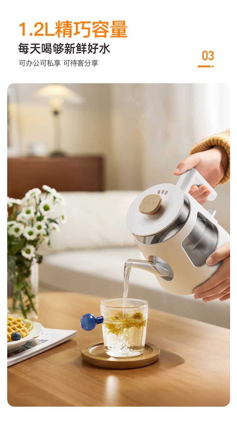 (巨邦佑)BJ+邻鹿 煮茶玻璃电热水壶(不带茶漏)1.2L LR-013 烧水壶大容量煮水壶办公室家用煮茶器自动断电不锈钢