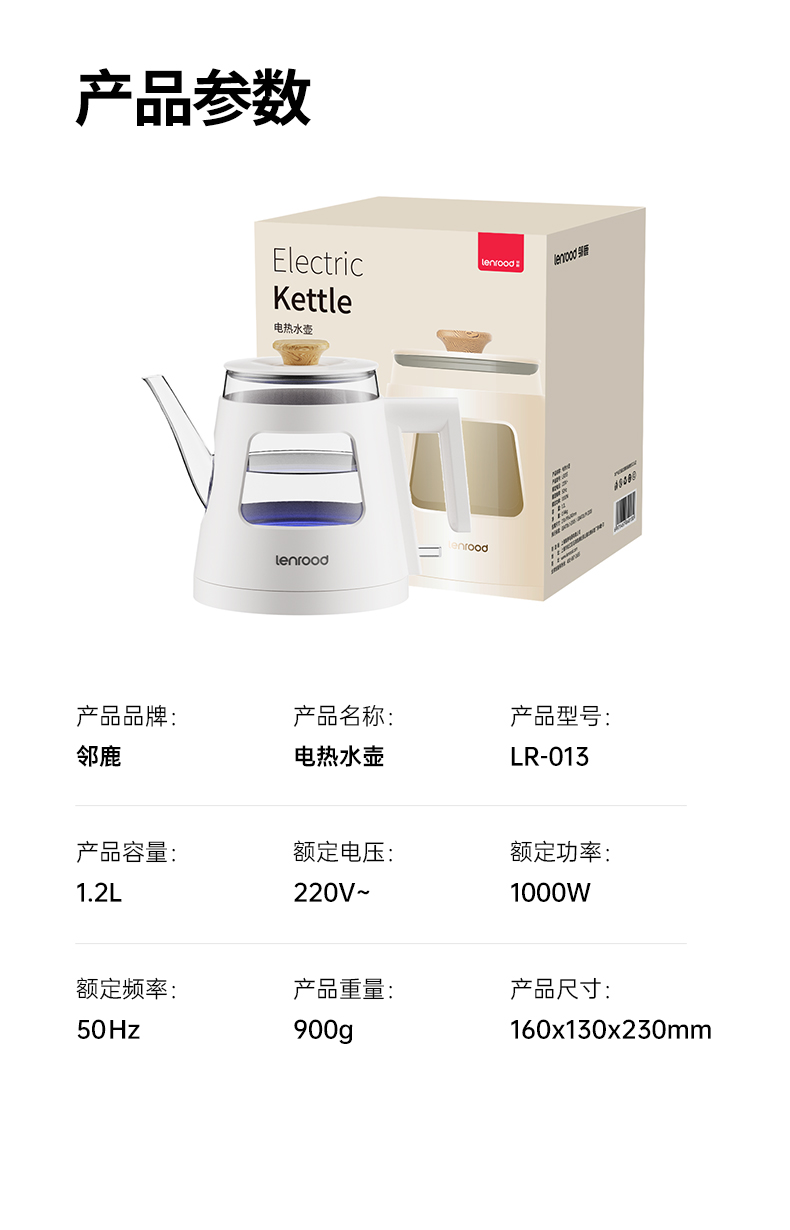 商品名称:(巨邦佑)BJ+邻鹿 煮茶玻璃电热水壶(不带茶漏)1.2L LR-013 烧水壶大容量煮水壶办公室家用煮茶器自动断电不锈钢
