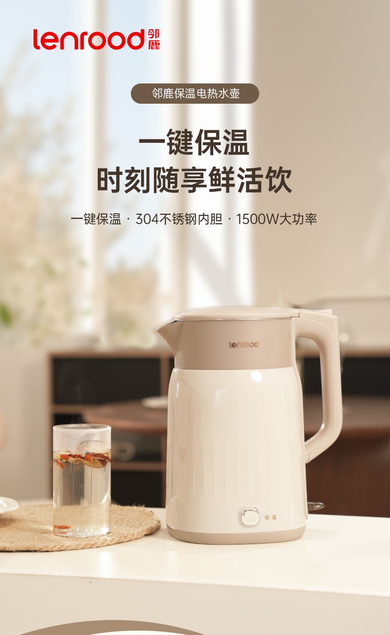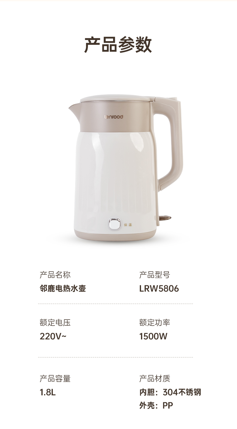 商品名称:(巨邦佑)BJ+邻鹿 电热水壶 1.8L LRW5806大容量 家用自动断电烧开水壶办公室智能
