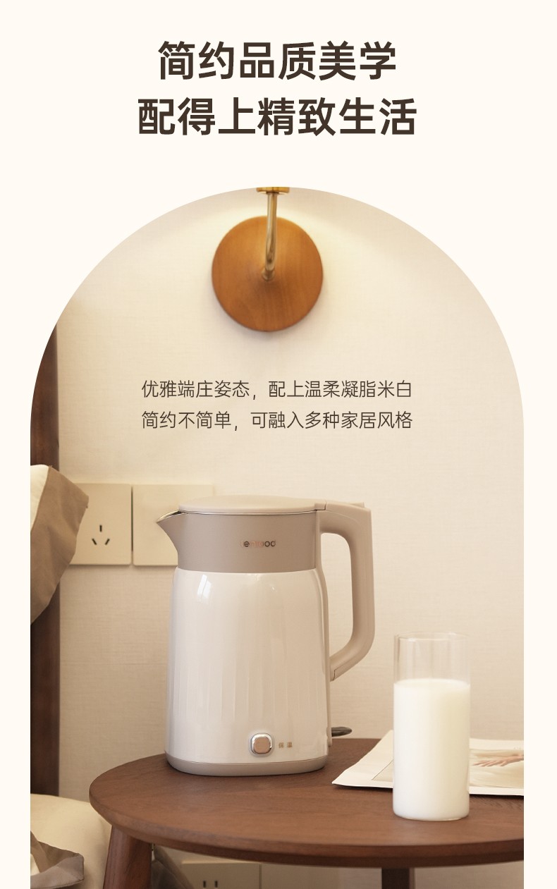 (巨邦佑)BJ+邻鹿 电热水壶 1.8L LRW5806大容量 家用自动断电烧开水壶办公室智能
