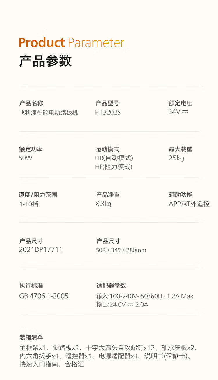商品名称:(巨邦佑)BJ+飞利浦 踏步机 FIT3202S 椭圆机智能居家减肥神器健身器械脚踏机