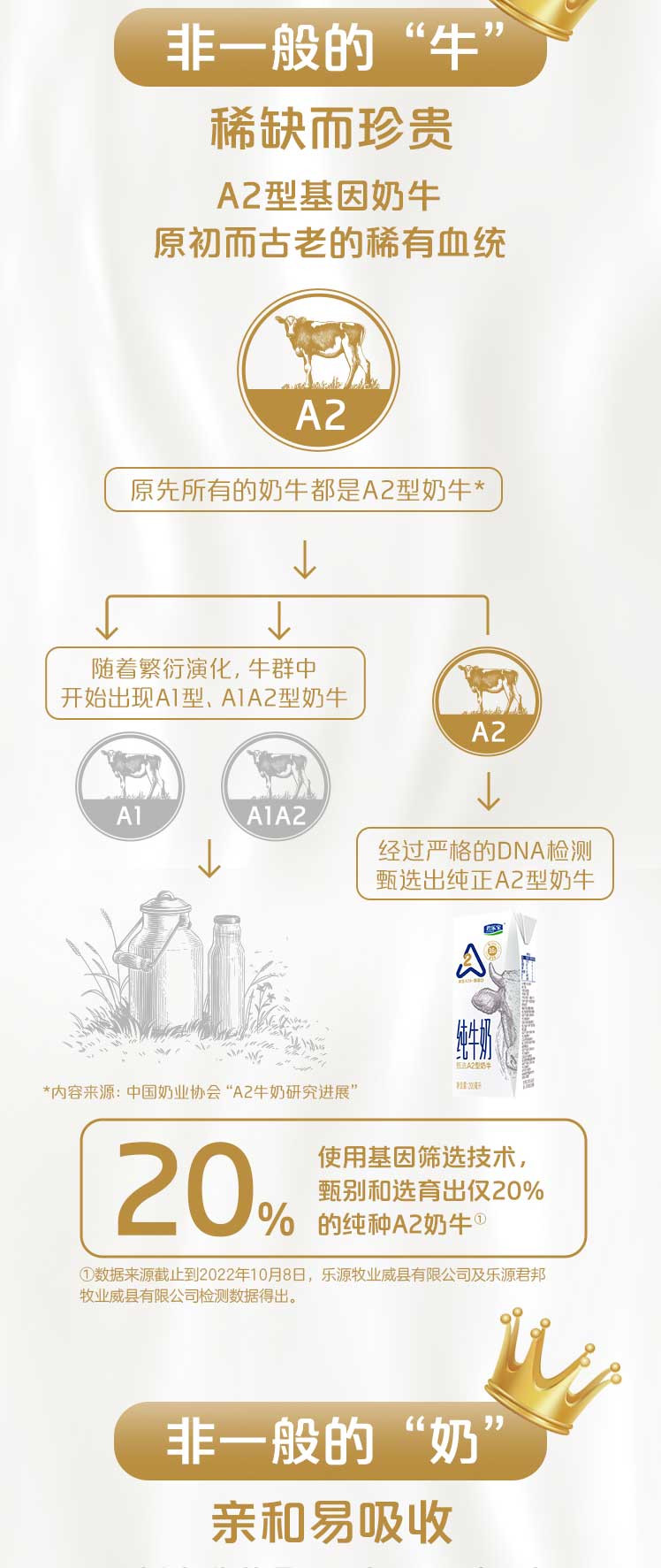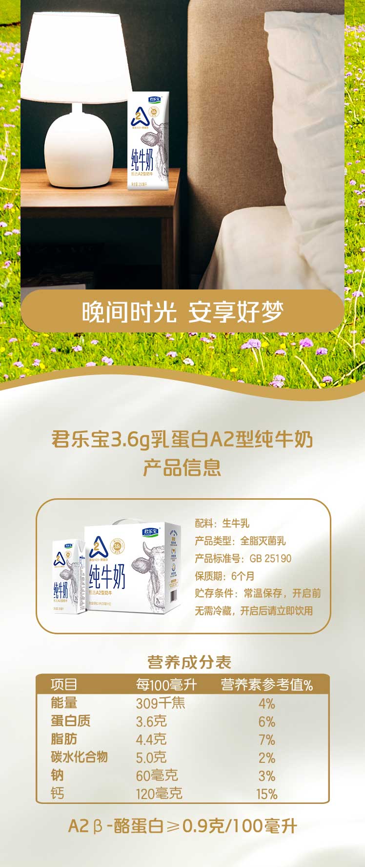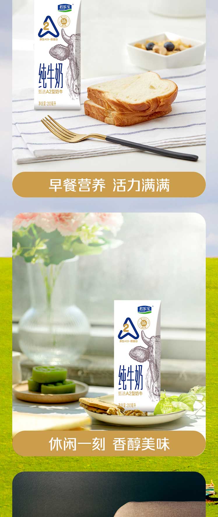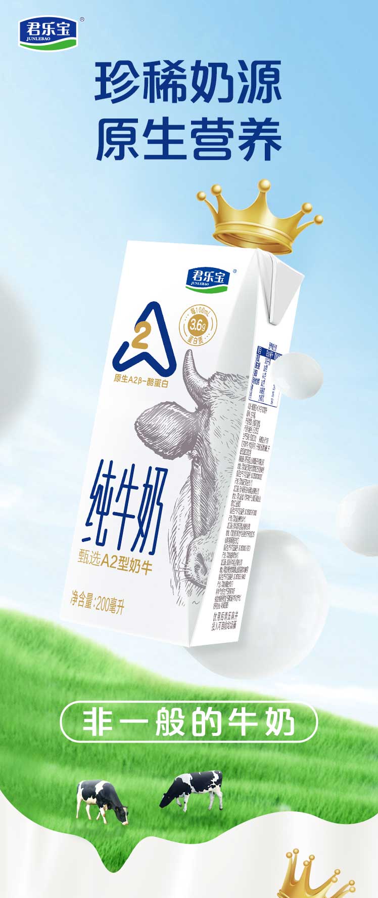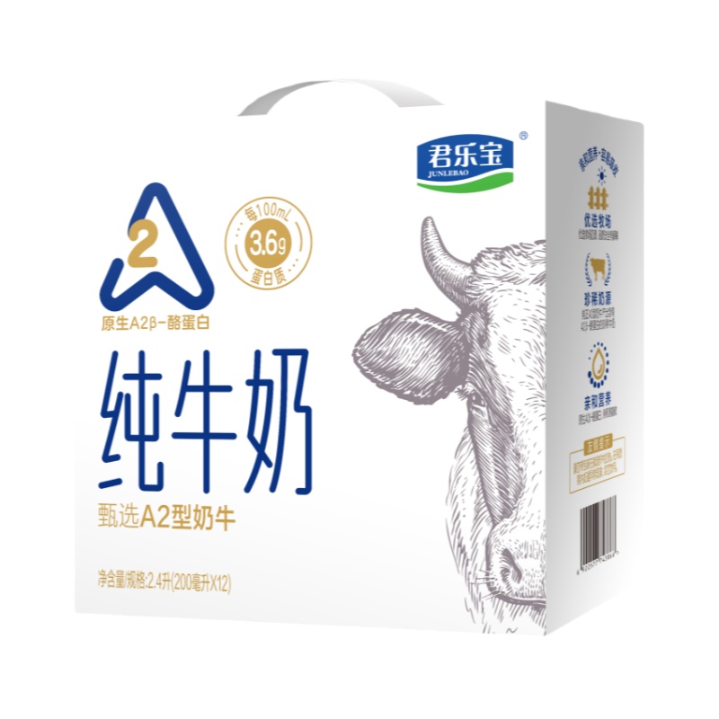 商品名称:(世星阳光)+君乐宝 3.6g乳蛋白A2纯牛奶200ml*12礼盒装 原生A2β-酪蛋白纯牛奶