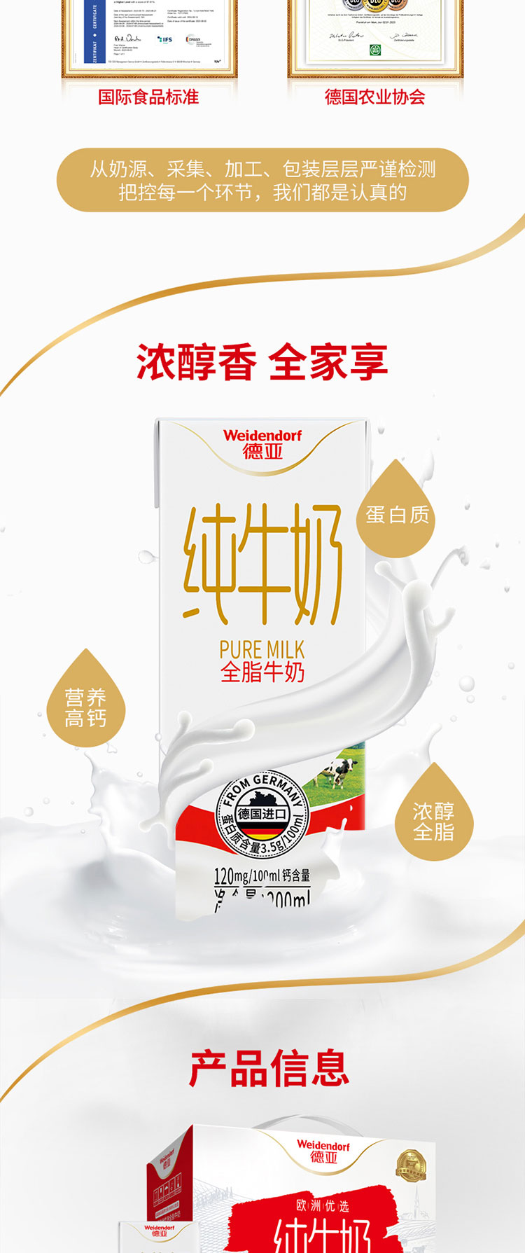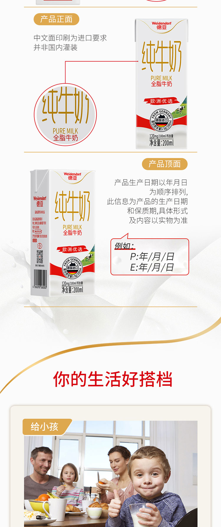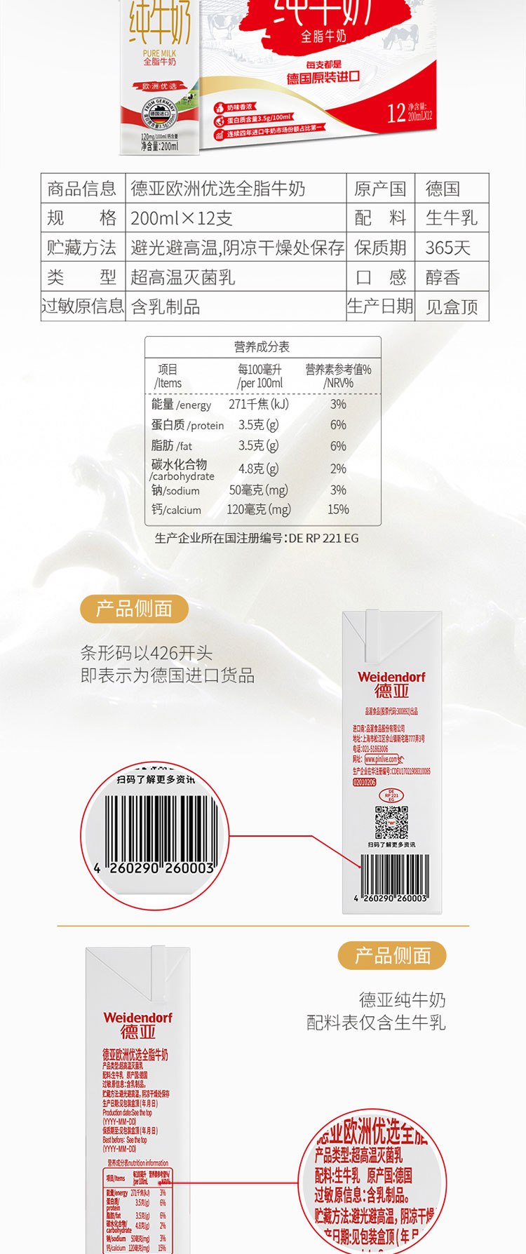 商品名称:(世星阳光)+德亚 欧洲优选全脂牛奶200ml*12(礼盒)德国进口全脂高钙纯牛奶 学生营养早餐