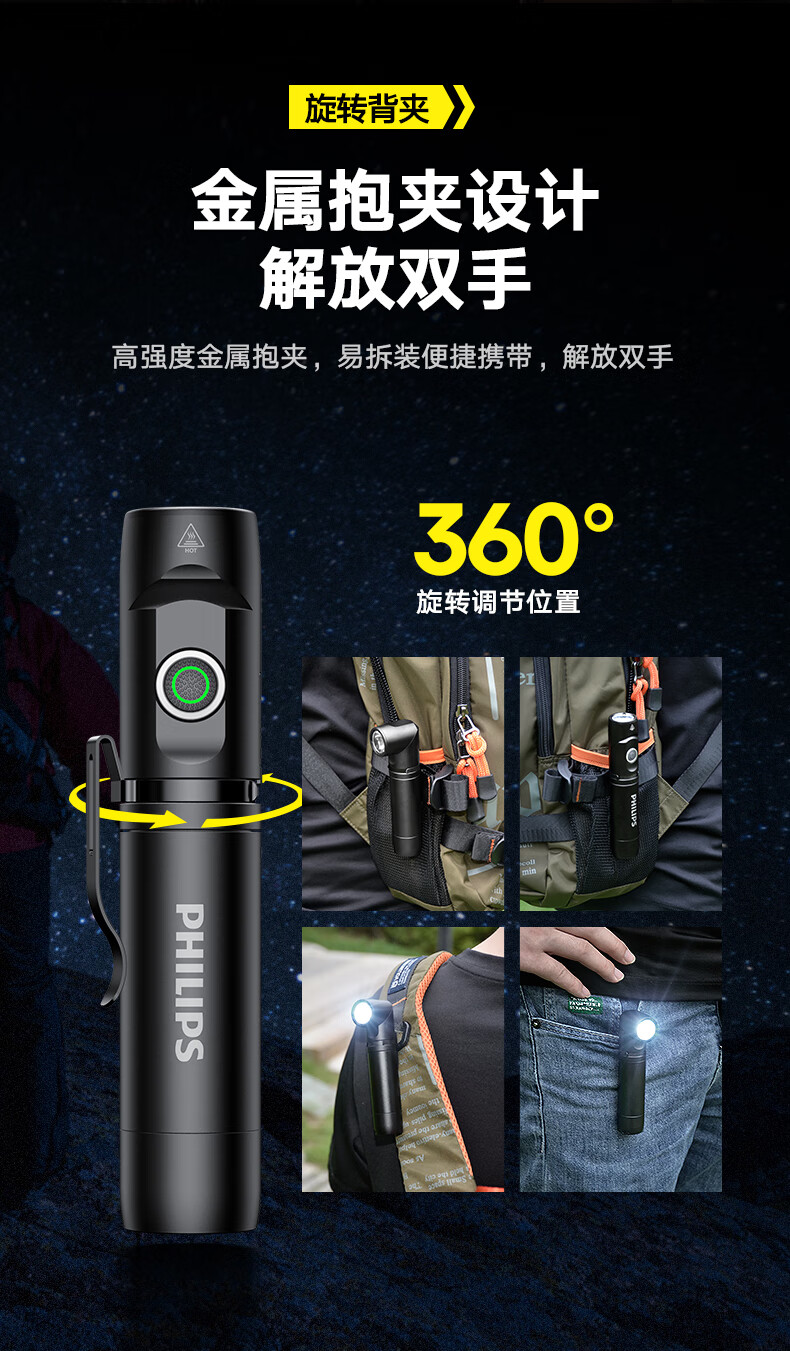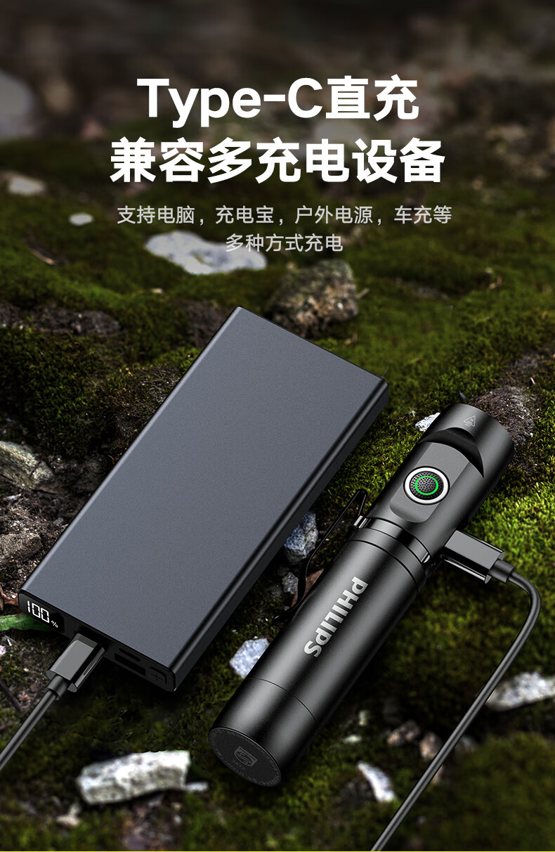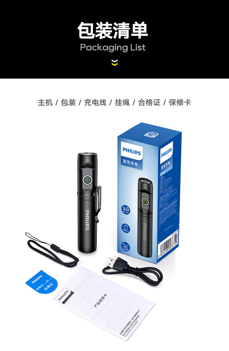商品名称:(巨邦佑)BJ+飞利浦 手电筒 SFL2201 黑色金属磁吸多功能转角工具灯充电家用户外骑行应急灯