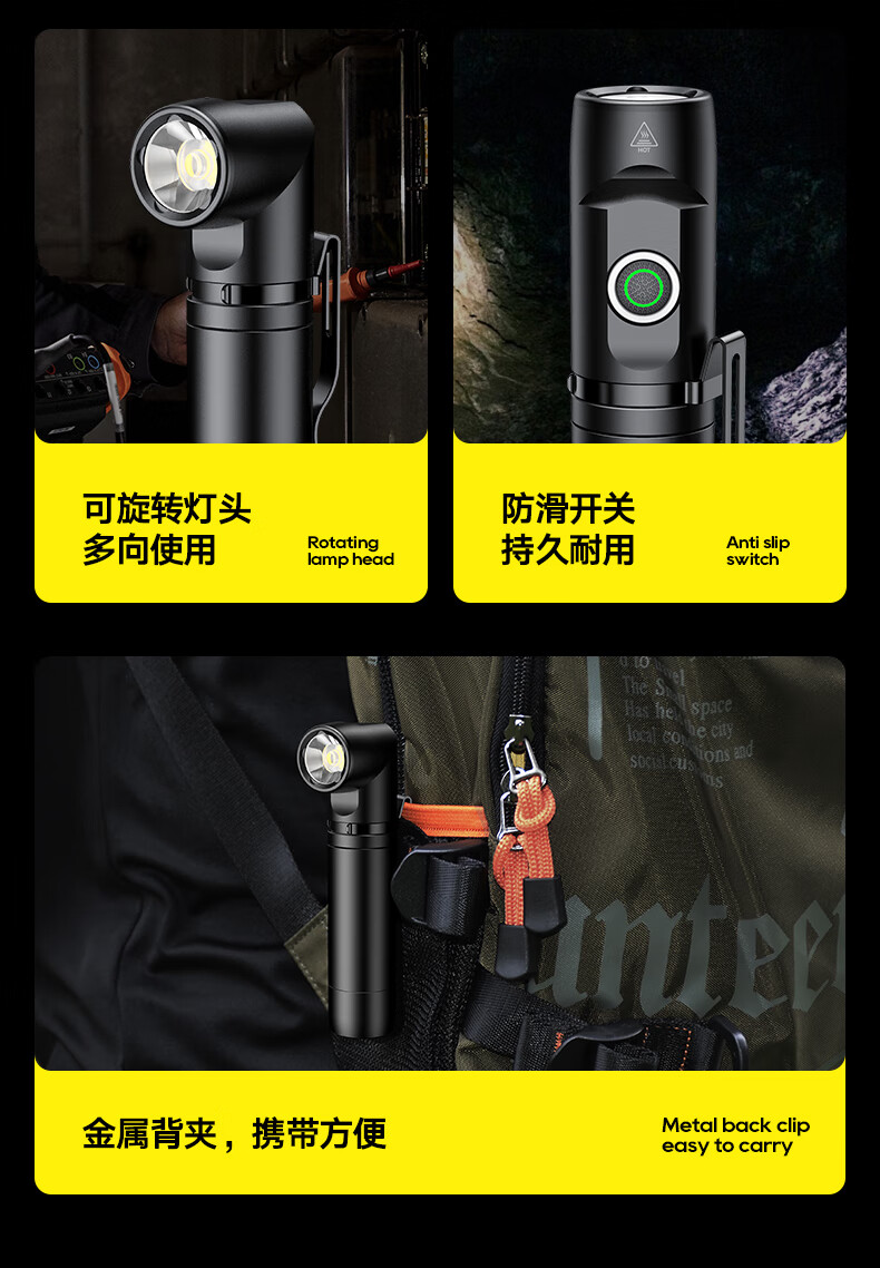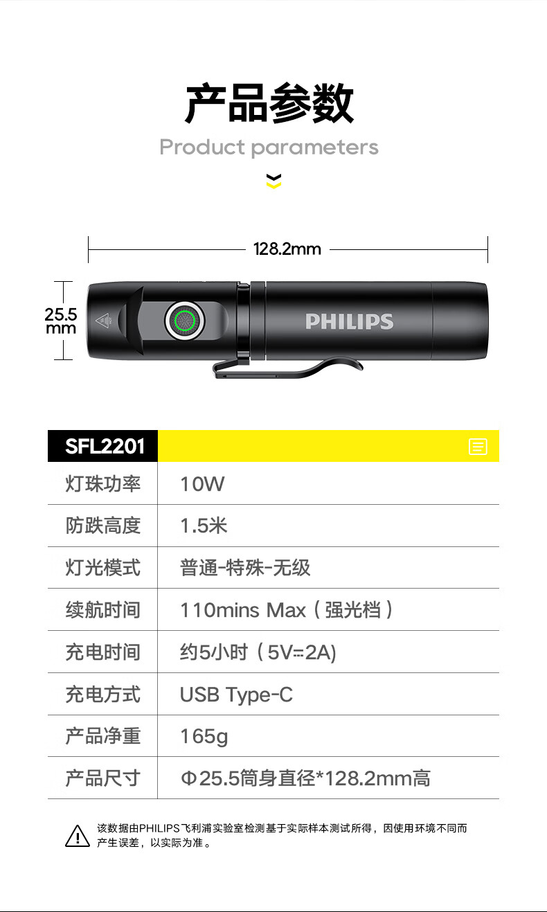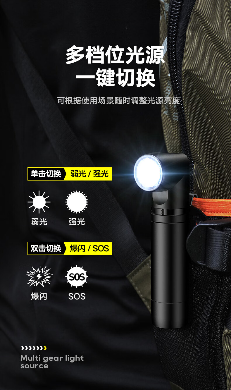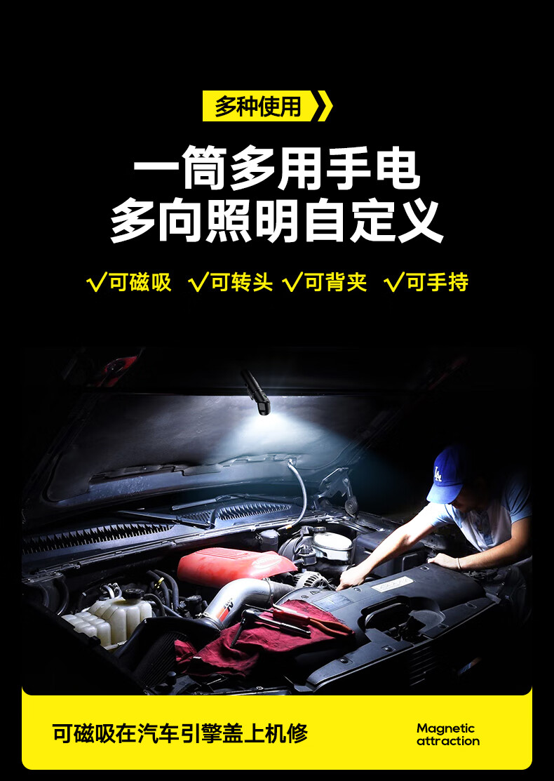 商品名称:(巨邦佑)BJ+飞利浦 手电筒 SFL2201 黑色金属磁吸多功能转角工具灯充电家用户外骑行应急灯