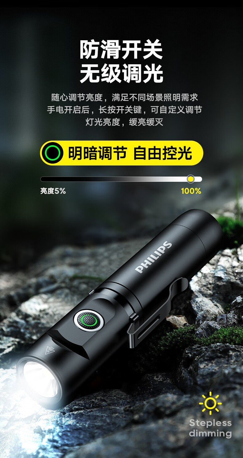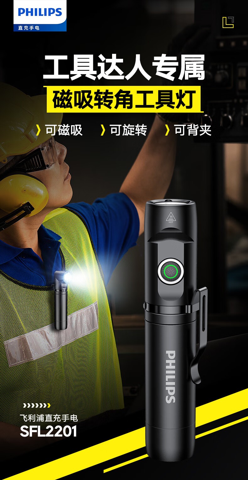 (巨邦佑)BJ+飞利浦 手电筒 SFL2201 黑色金属磁吸多功能转角工具灯充电家用户外骑行应急灯