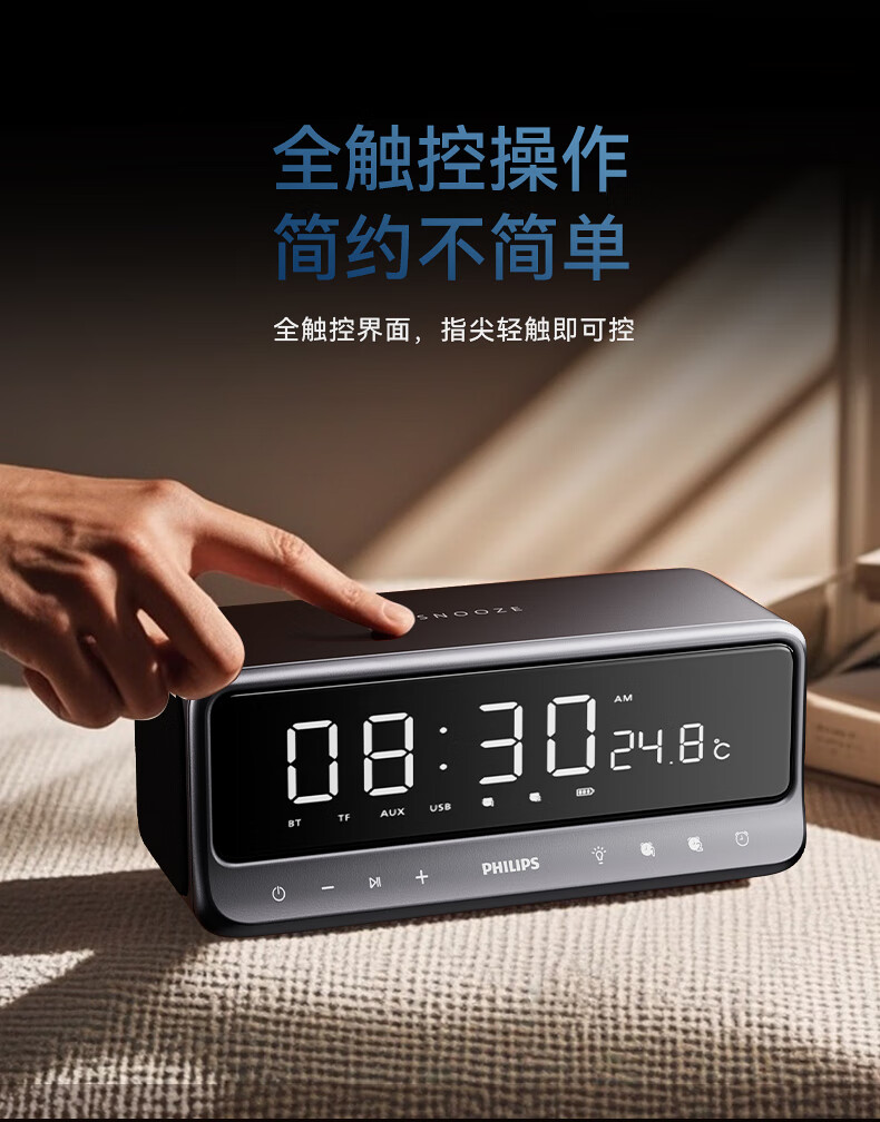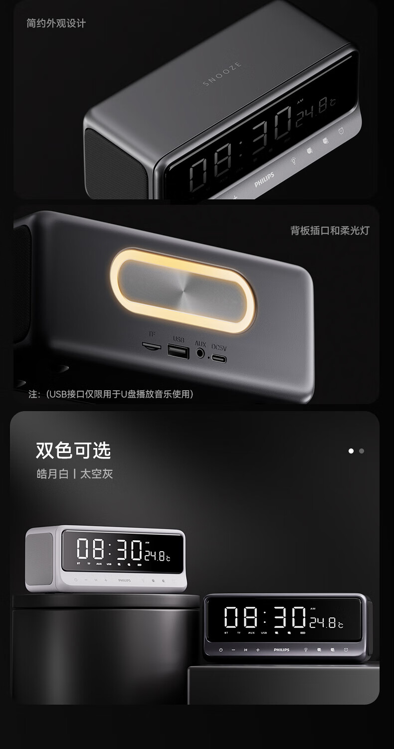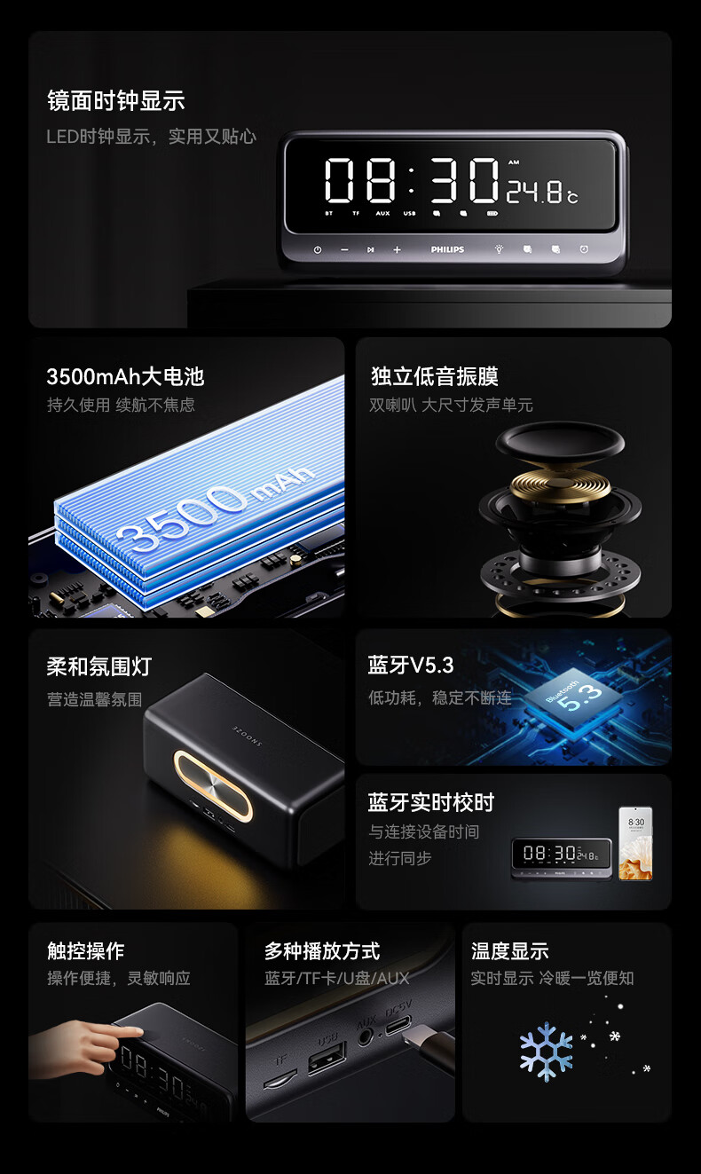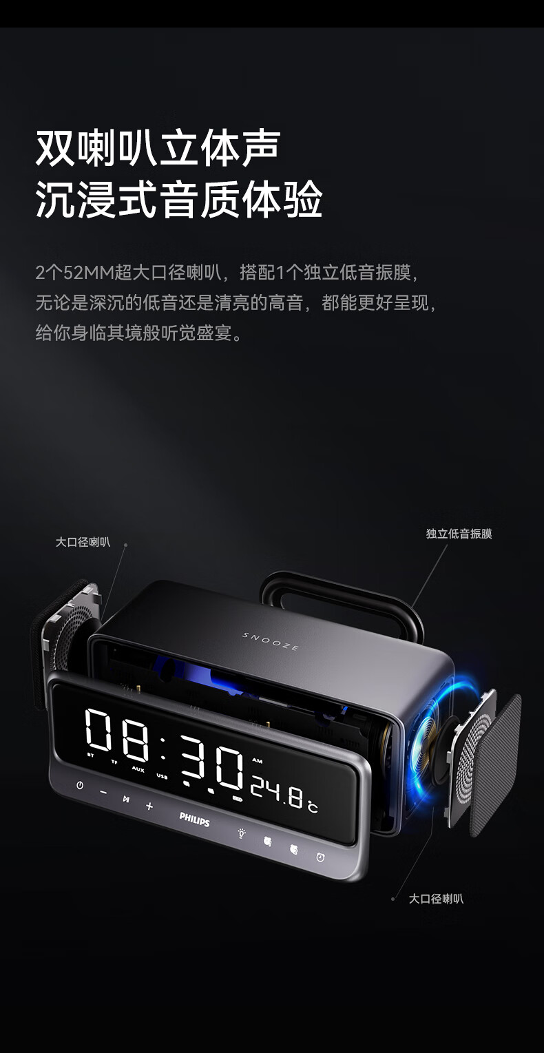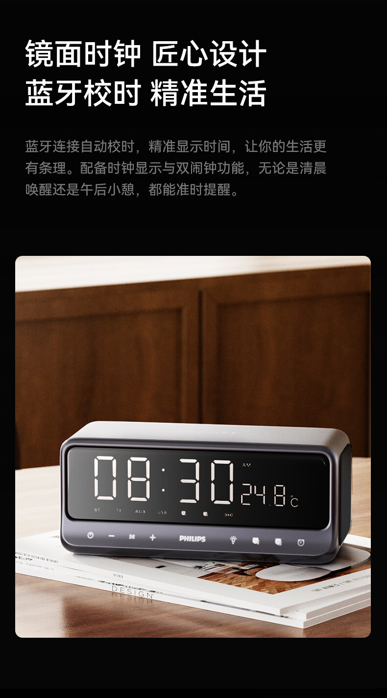 商品名称:(巨邦佑)BJ+飞利浦 音箱 TAS3609 蓝牙音响闹钟镜面全屏迷你便携家用桌面低音炮学生