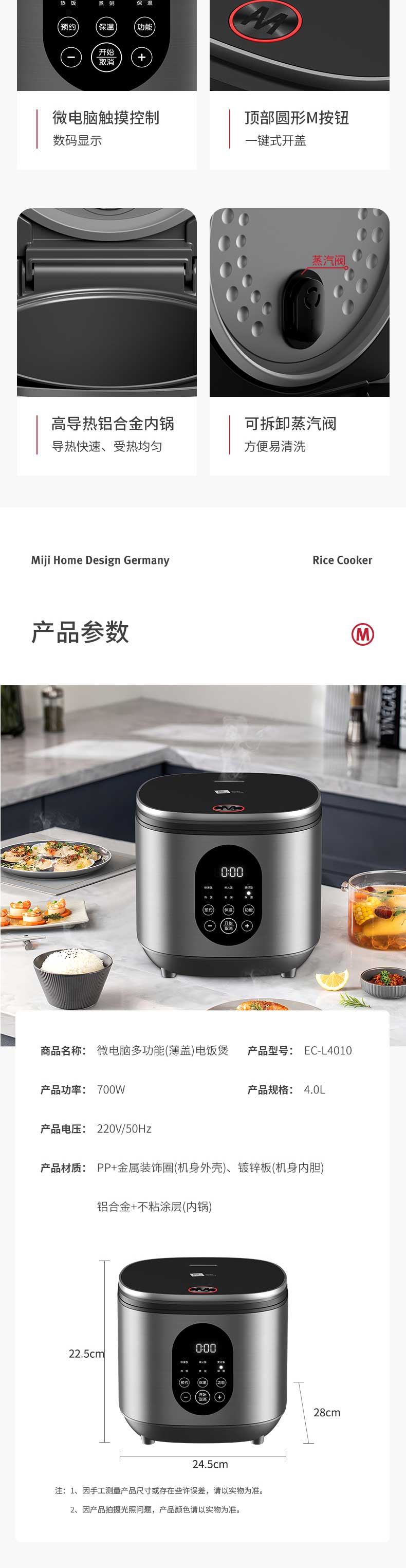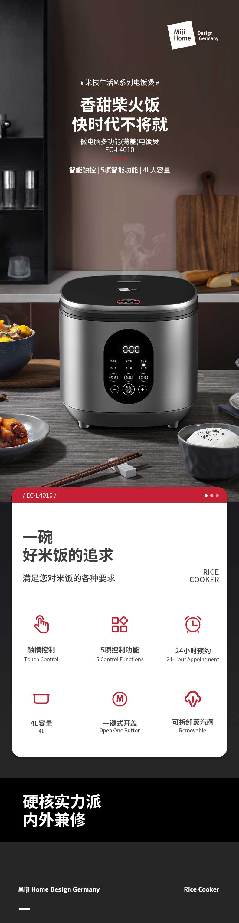 商品名称:(世星阳光)+米技(MIJI)电饭锅电饭煲多功能家用智能煲汤煮粥预约 EC-L4010 4L