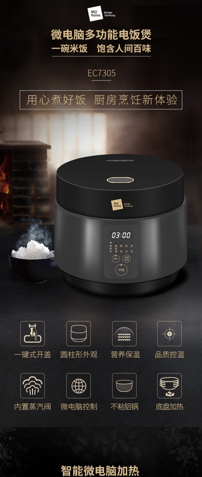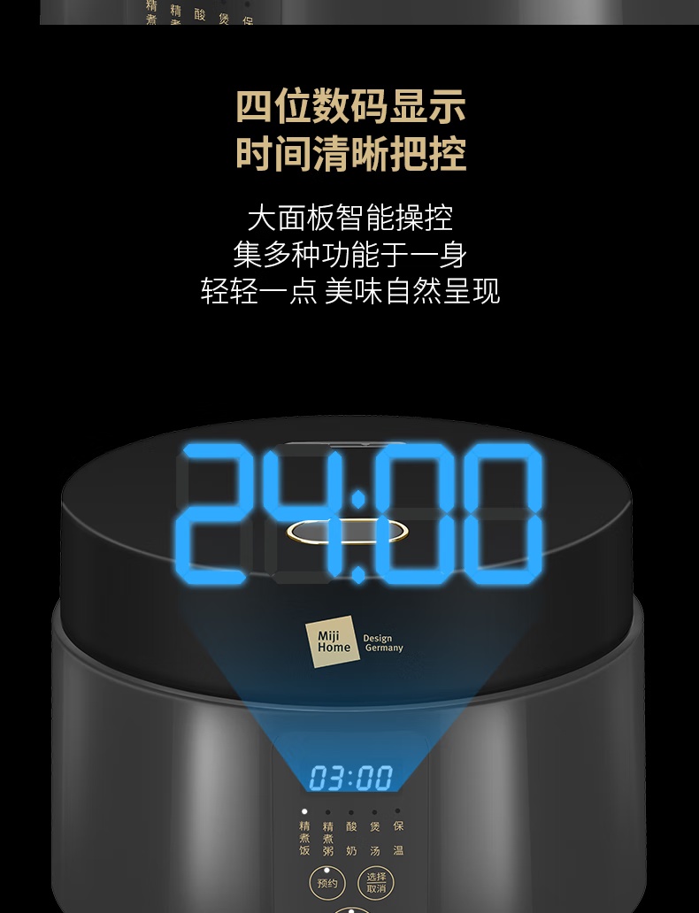 (世星阳光)+米技(MIJI)电饭煲家用4L多功能电饭锅 EC7305 MIJI HOME 4L 一键式开盖 轻松操作防腐蚀 抗磨损大按键 一键式开启按钮易于单手操作 大面板智能操控 集多种功能于一身