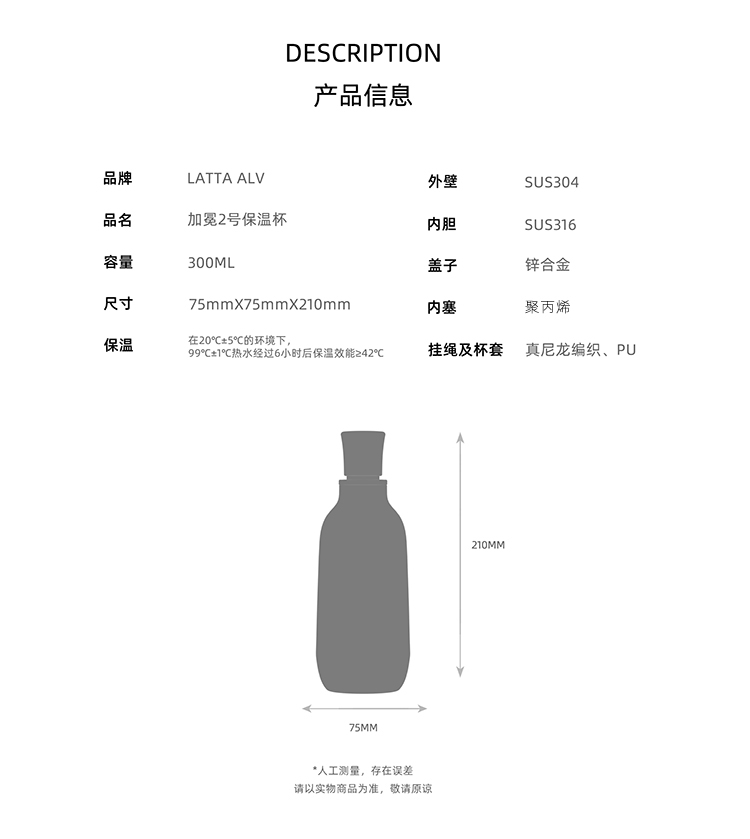 商品名称:(巨邦佑)BJ+LATTA ALV 沙库里加冕2号保温杯 300ml 多色可选男女高颜值水杯子生日礼物