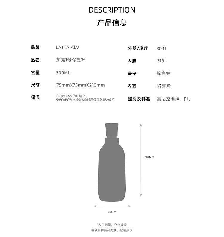 商品名称:(巨邦佑)BJ+LATTA ALV 沙库里加冕1号保温杯 300ml 女款高颜值新款水杯子生日礼物