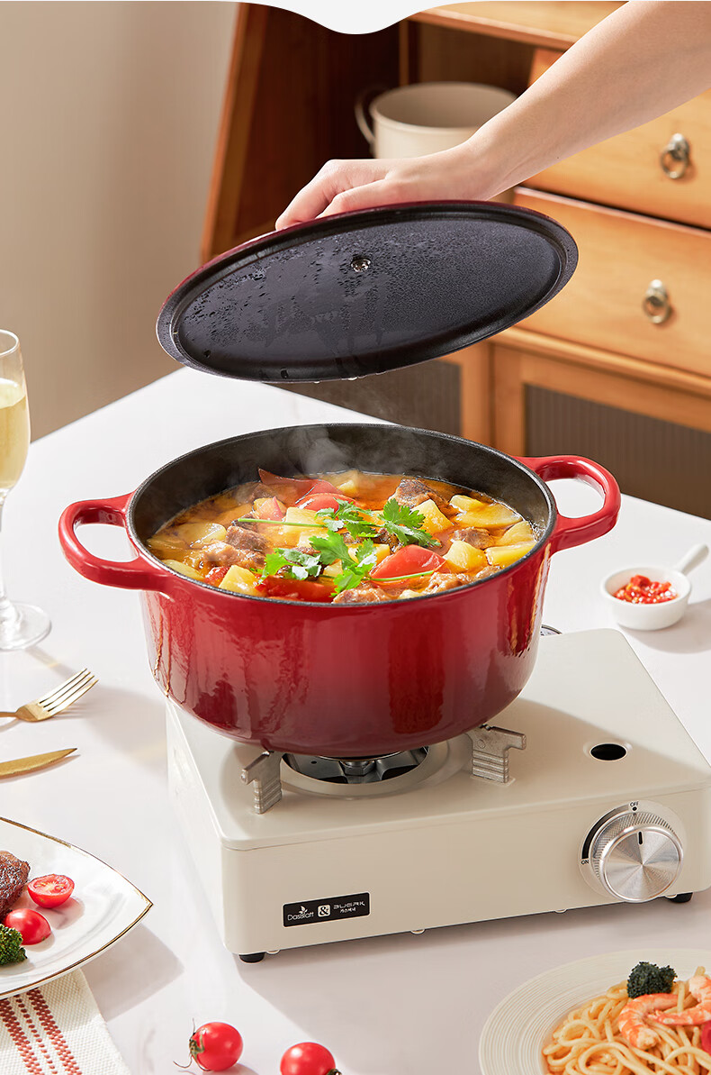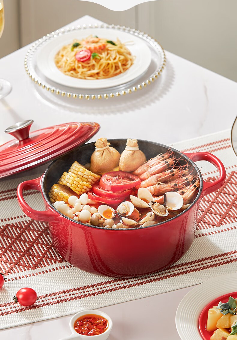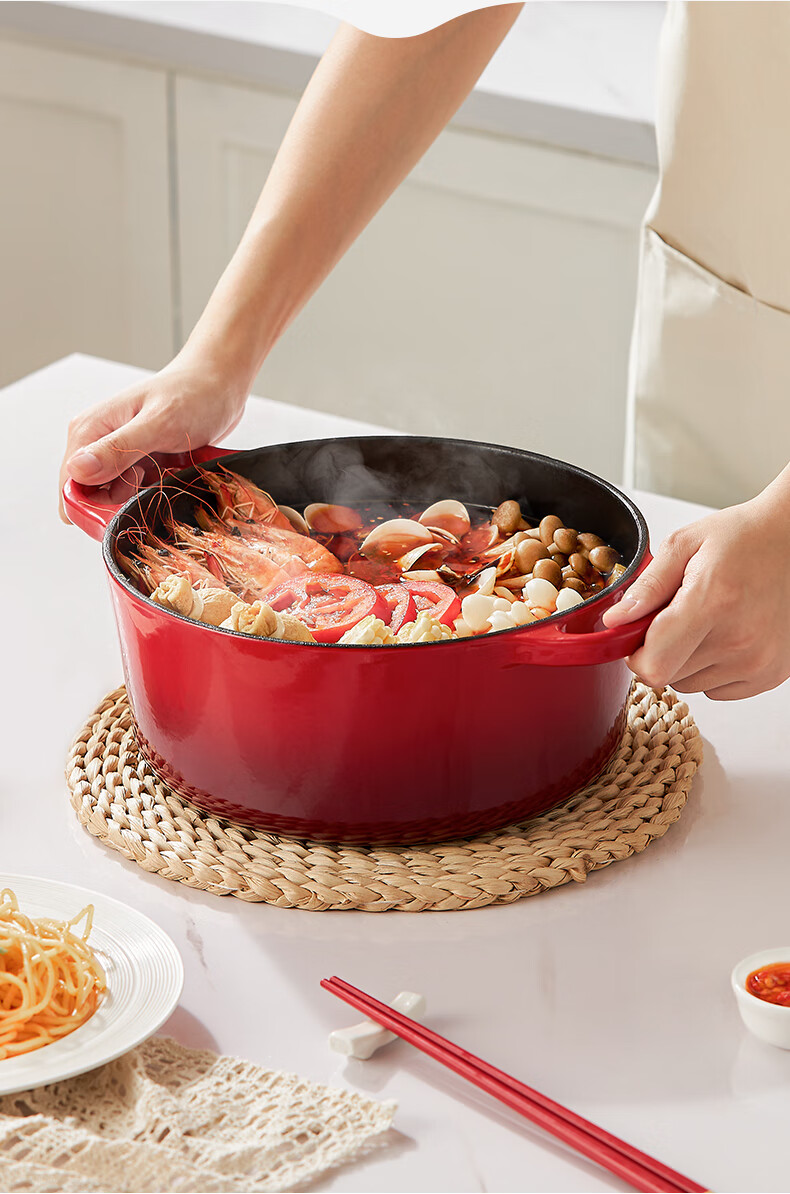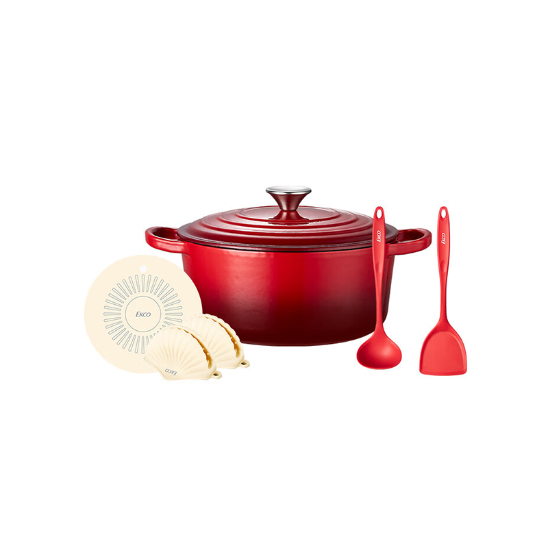 (巨邦佑)BJ+康宁 蛇韵珐琅礼盒三件组礼盒 多功能铸铁珐琅锅+硅胶铲勺2件组+防烫隔热套装