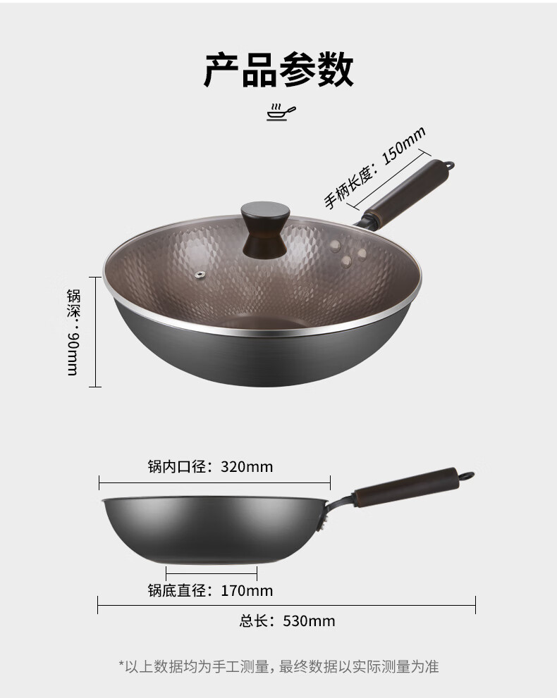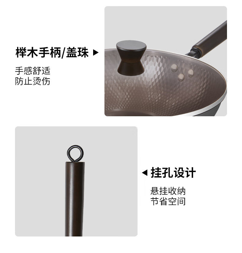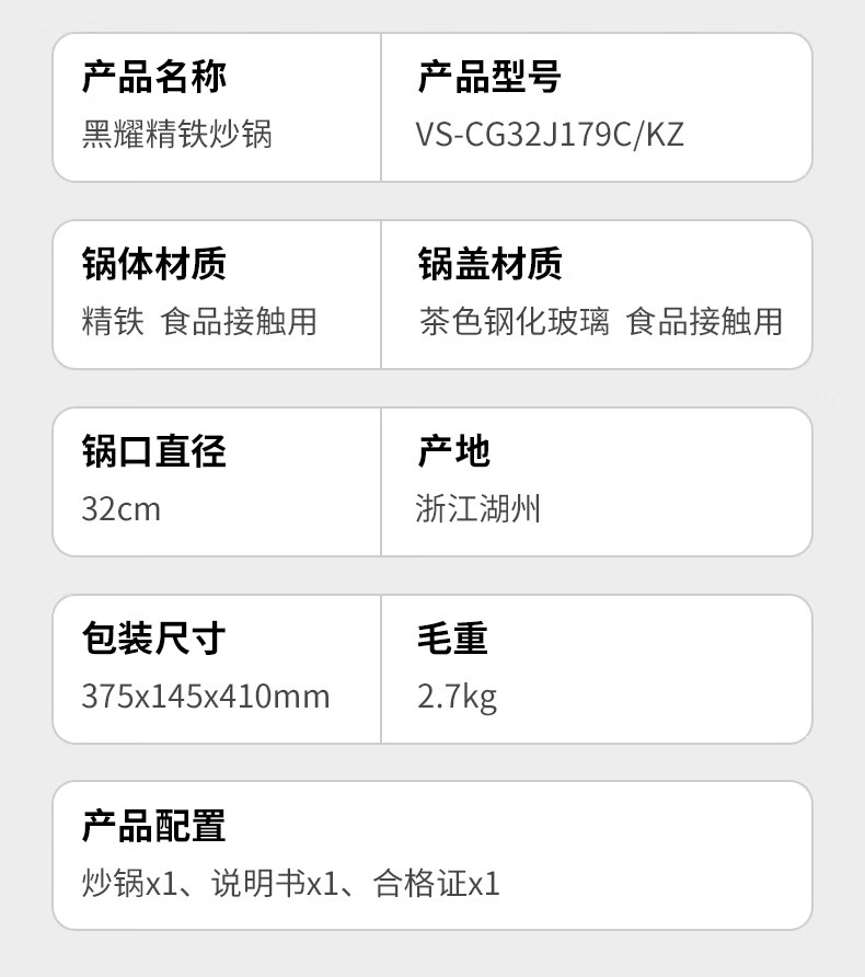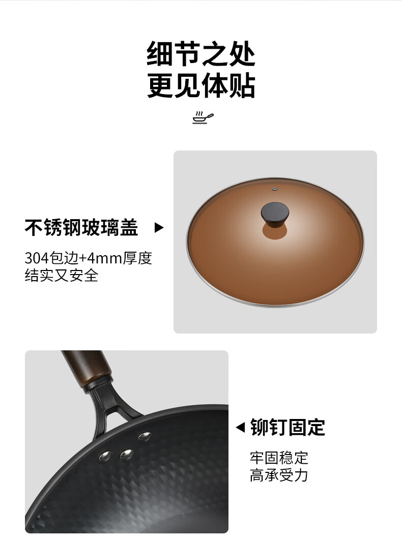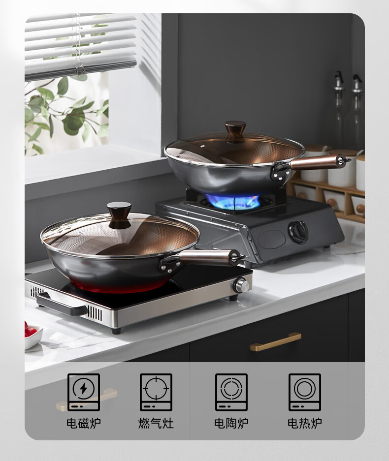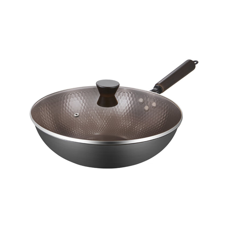 商品名称:(巨邦佑)BJ+康宁 黑耀精铁炒锅32CM 不锈钢玻璃盖贴心挂钩设计