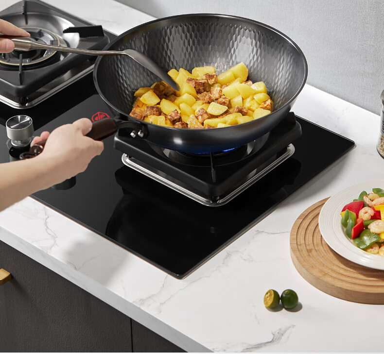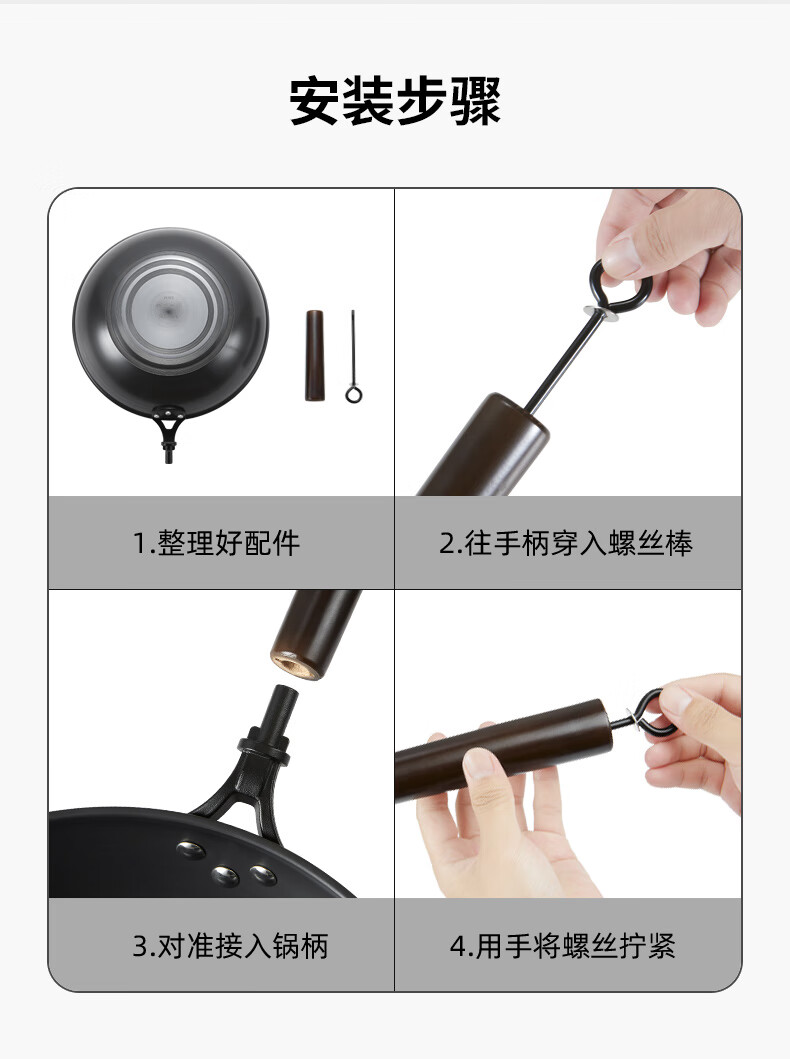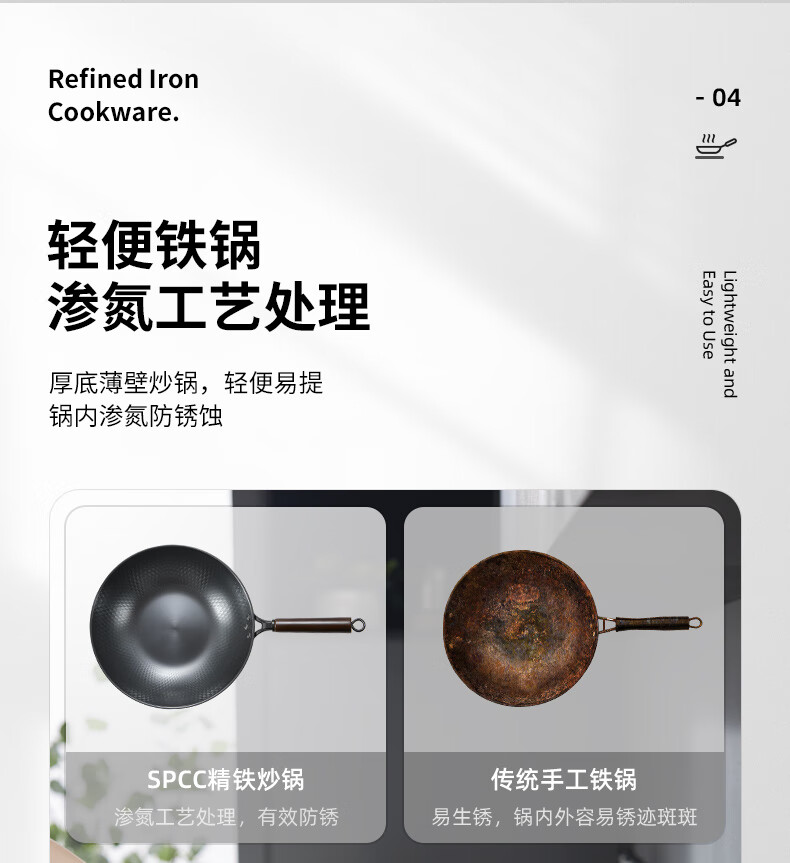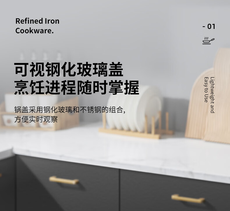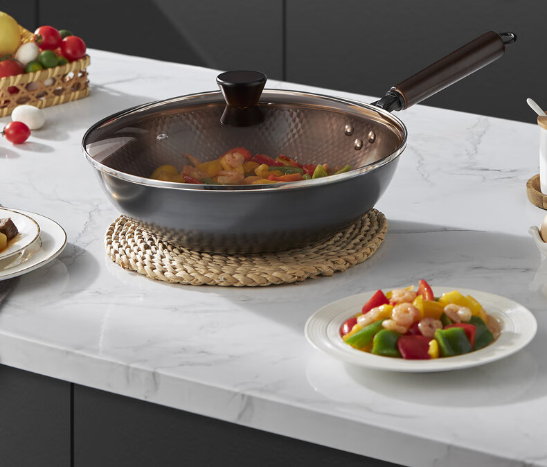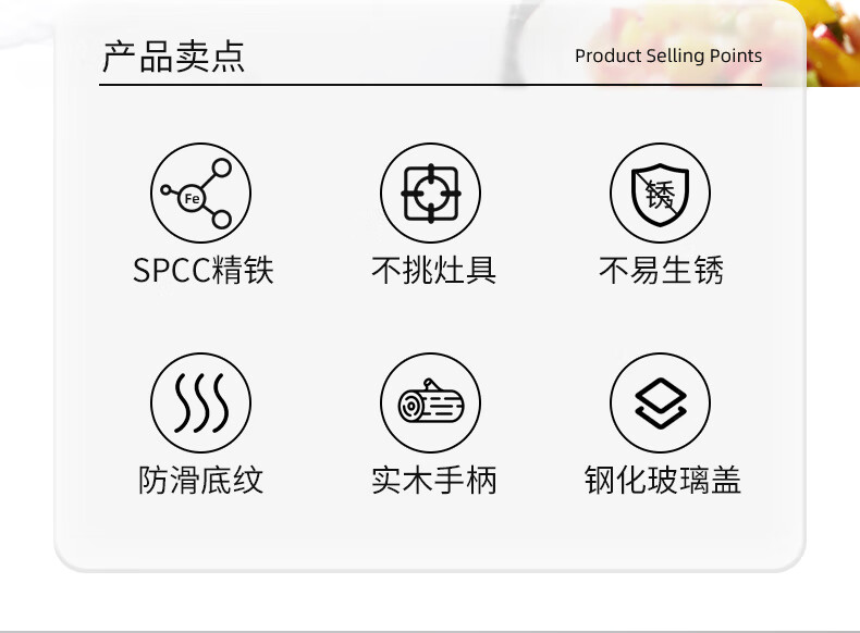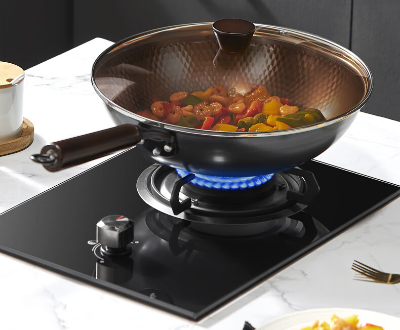 商品名称:(巨邦佑)BJ+康宁 黑耀精铁炒锅32CM 不锈钢玻璃盖贴心挂钩设计