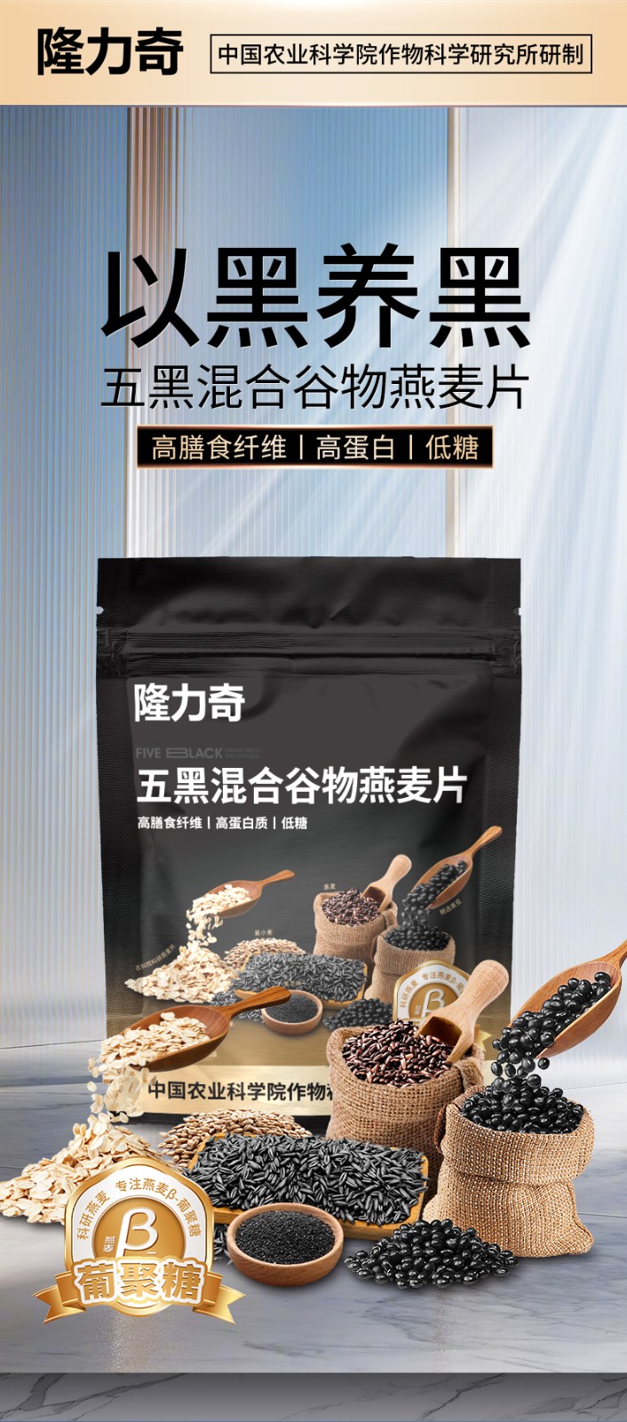 (巨邦佑)BJ+隆力奇 五黑混合谷物燕麦片425g*3袋 高膳食纤维高蛋白低糖