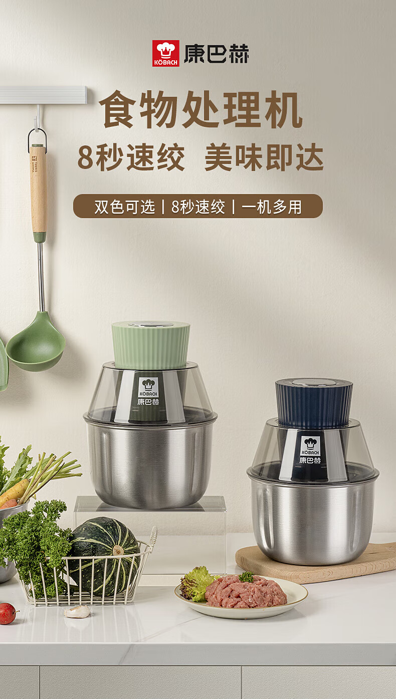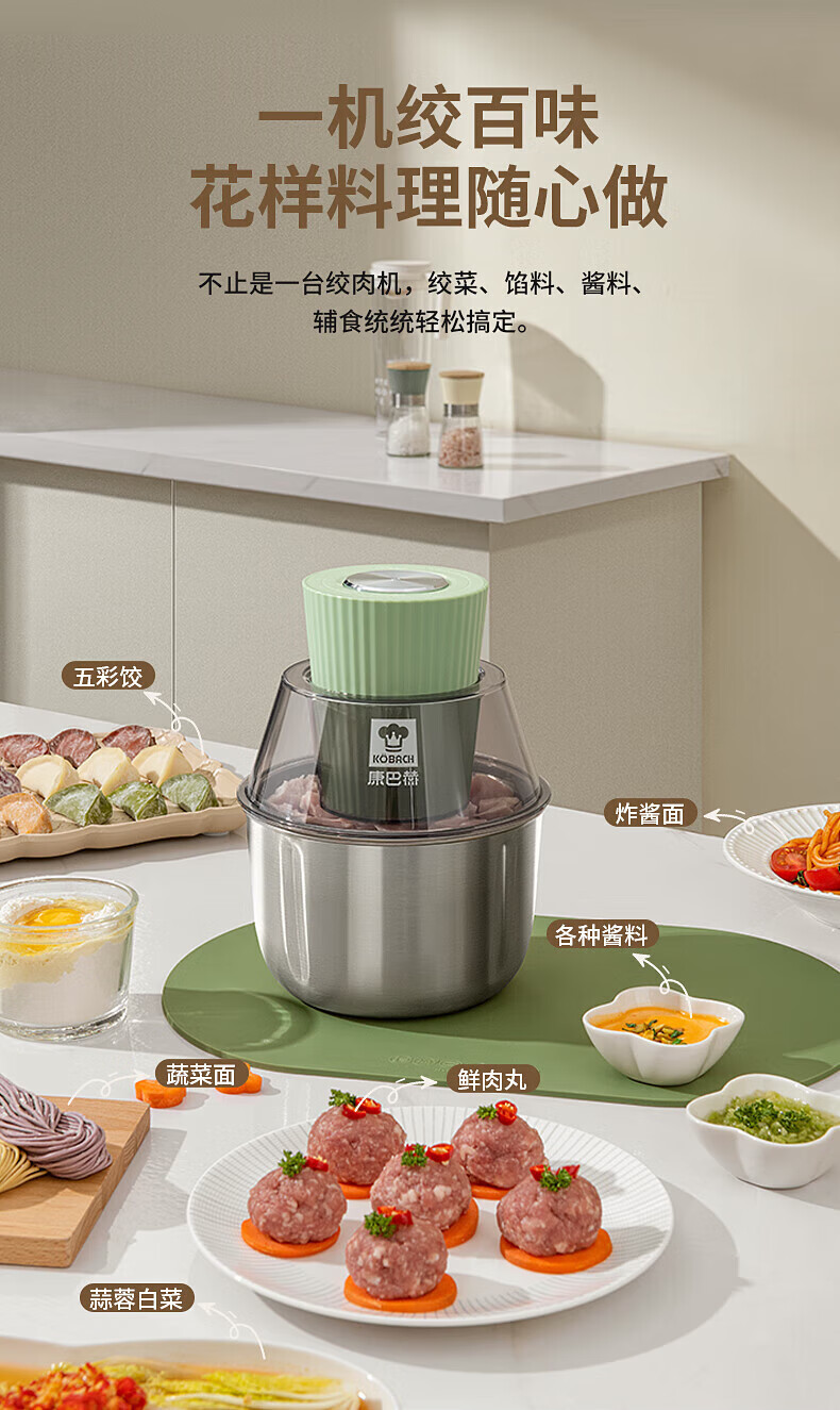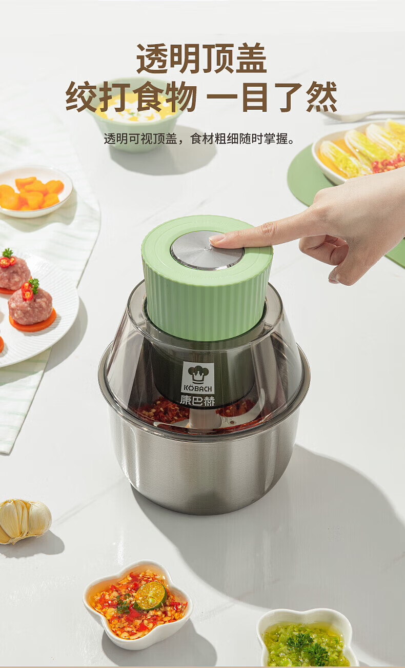 (巨邦佑)BJ+康巴赫百味绞肉机 1.8L KJS-331 透明顶盖双层立体四叶刀