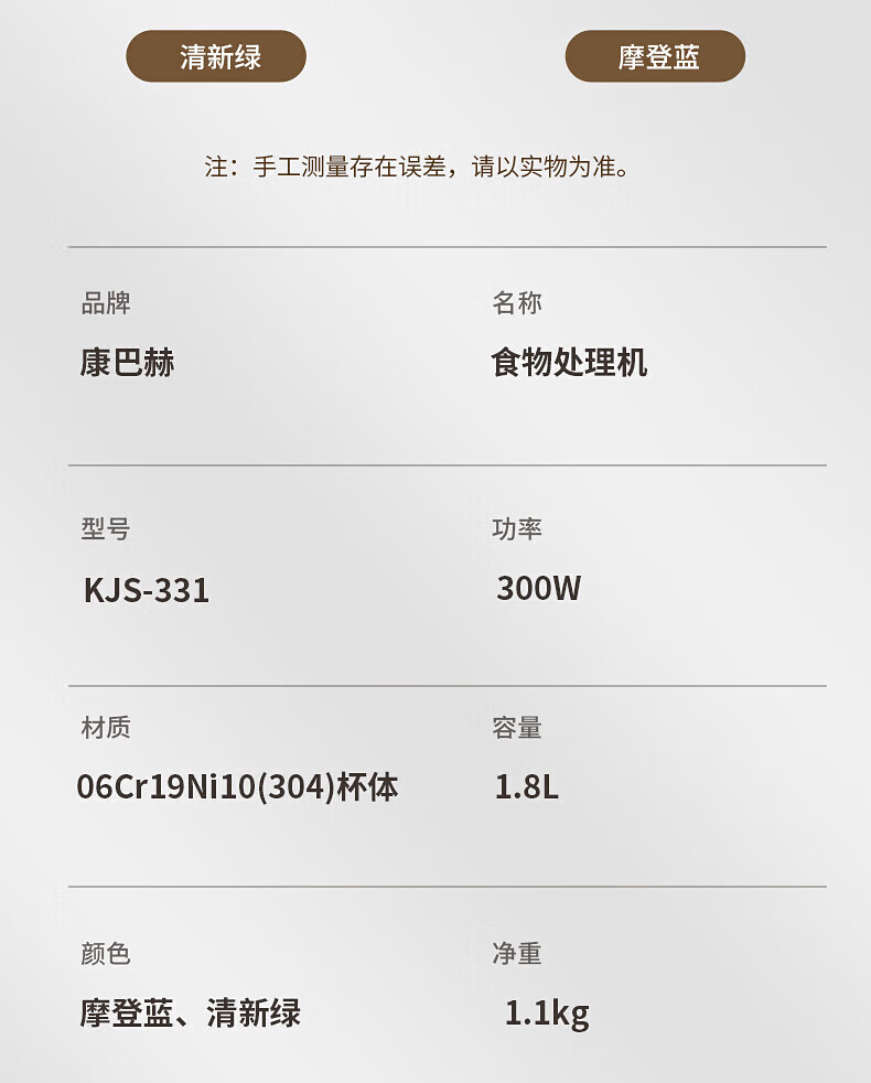 商品名称:(巨邦佑)BJ+康巴赫百味绞肉机 1.8L KJS-331 透明顶盖双层立体四叶刀