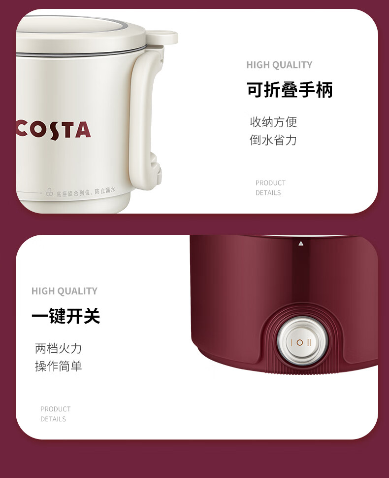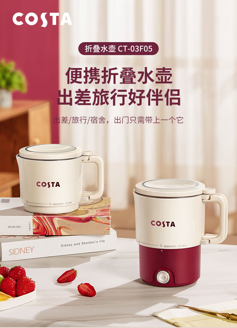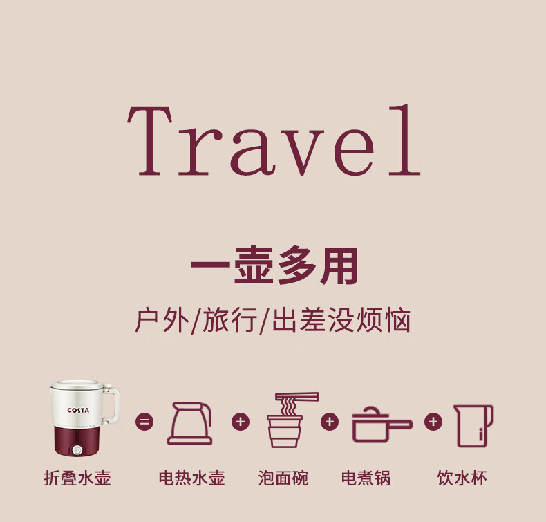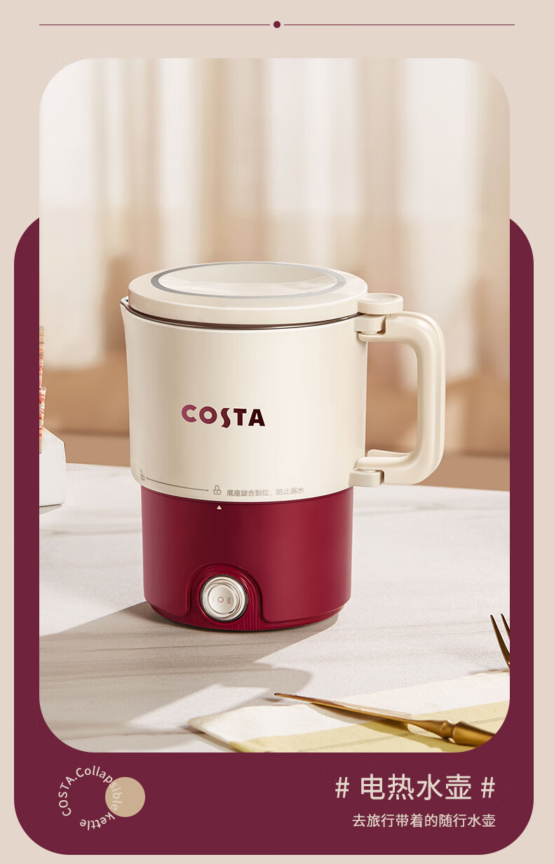 (巨邦佑)BJ+COSTA 电热水壶(折叠水壶) 800ml CT-03F05 可折叠手柄一键开关