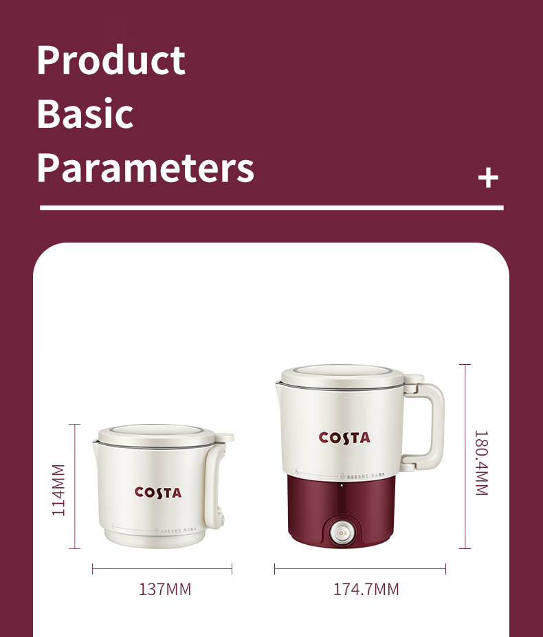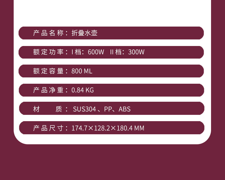 商品名称:(巨邦佑)BJ+COSTA 电热水壶(折叠水壶) 800ml CT-03F05 可折叠手柄一键开关