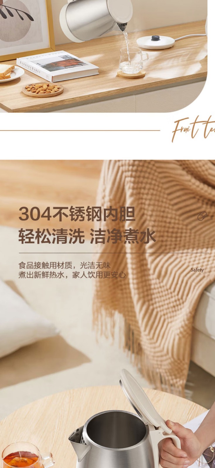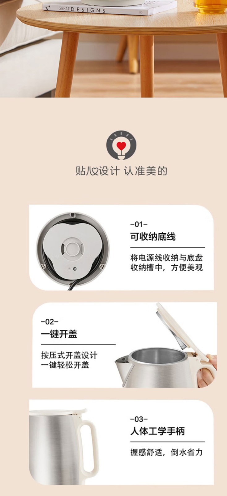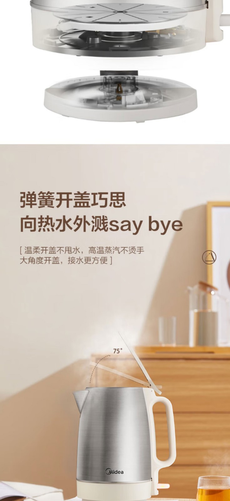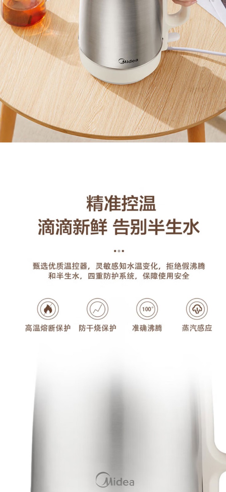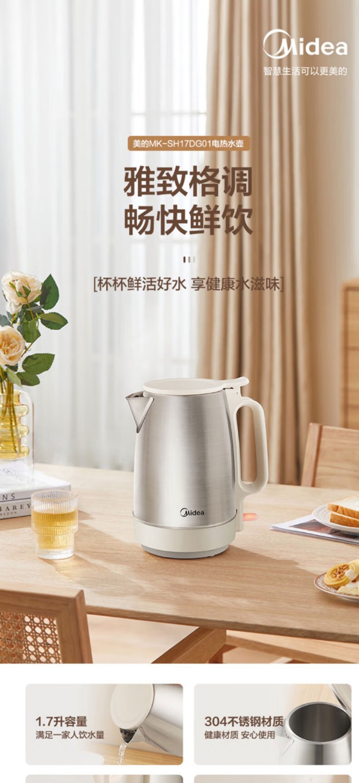 (世星阳光)美的1.7L 电水壶 SH17DG01 304不锈钢 弹簧阻尼开盖