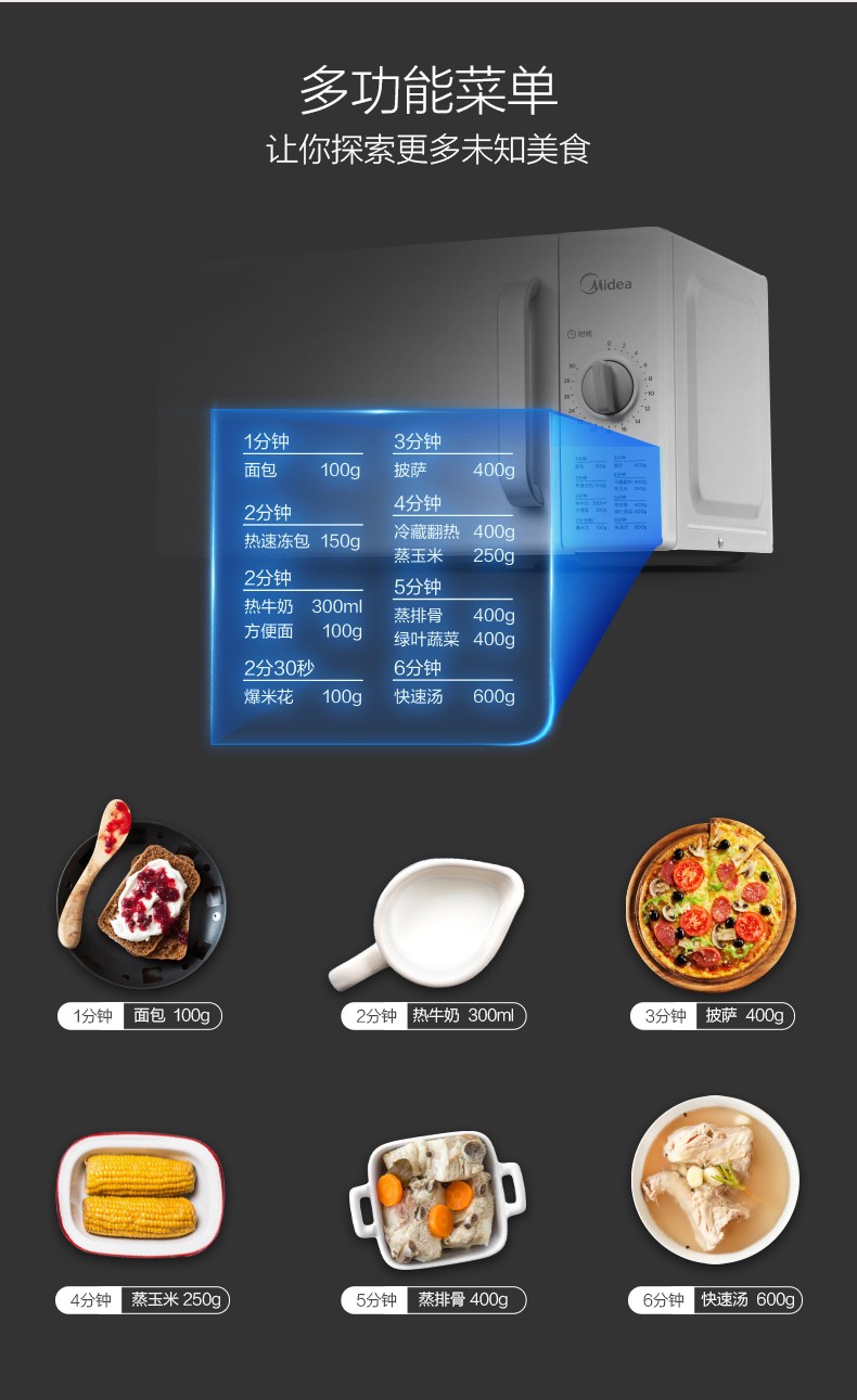 商品名称:(世星阳光)美的 微波炉 20L M100 易洁内胆 一抹即净 旋转加热无死角