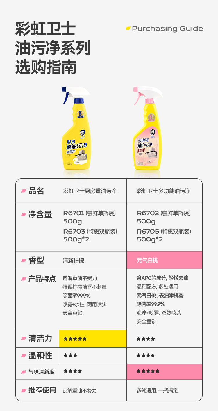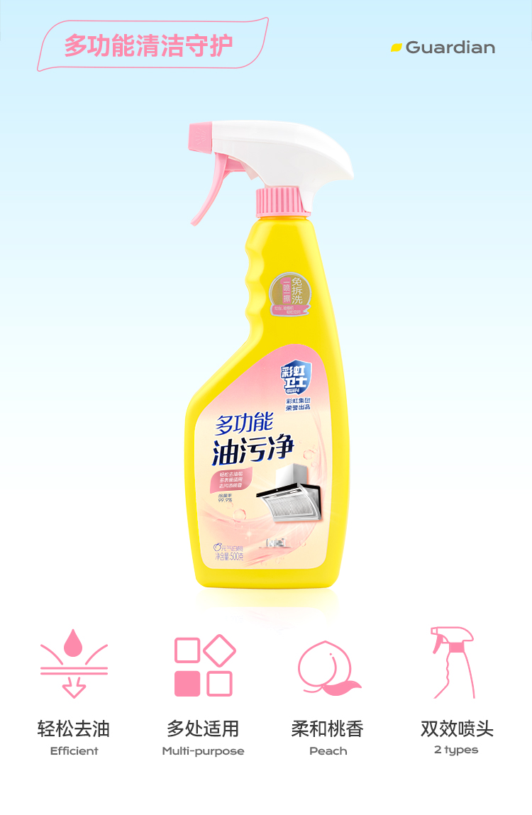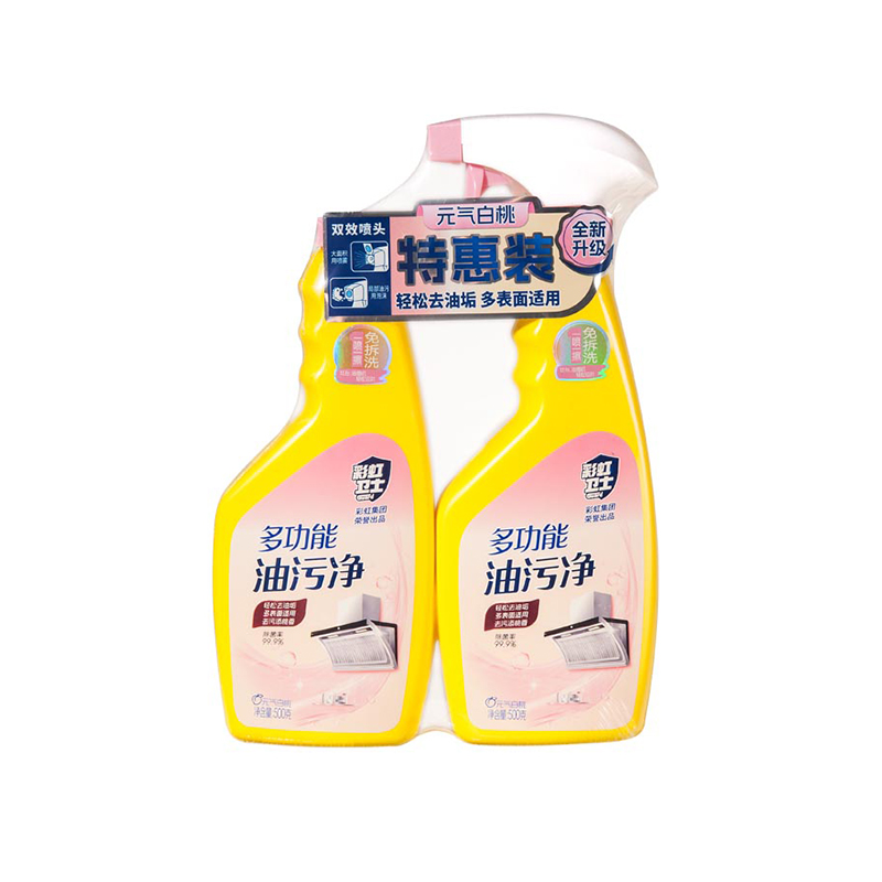 商品名称:(巨邦佑)T+ (yp)彩虹卫士厨房重油污净元气白桃 500g 2瓶抽油烟机清洗喷剂厨房强力去污渍家用清洁液 双瓶加强型
