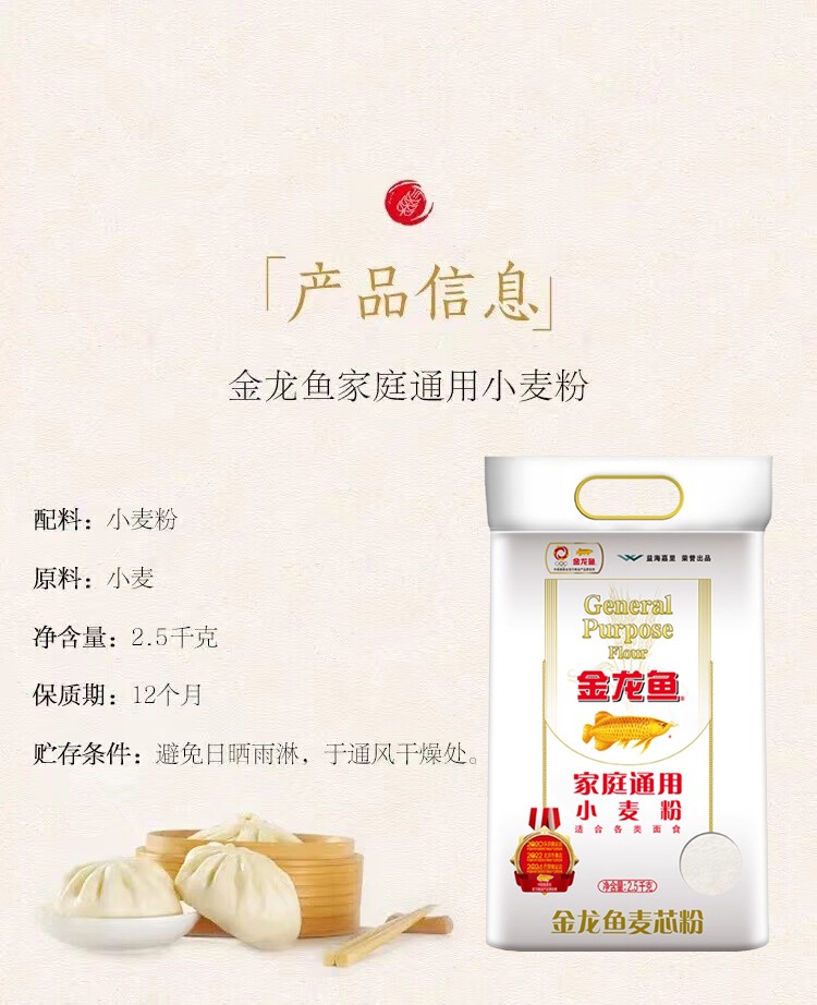 商品名称:(巨邦佑)T+ (yp)金龙鱼家庭通用小麦面粉2.5kg 包子饺子馒头烙饼