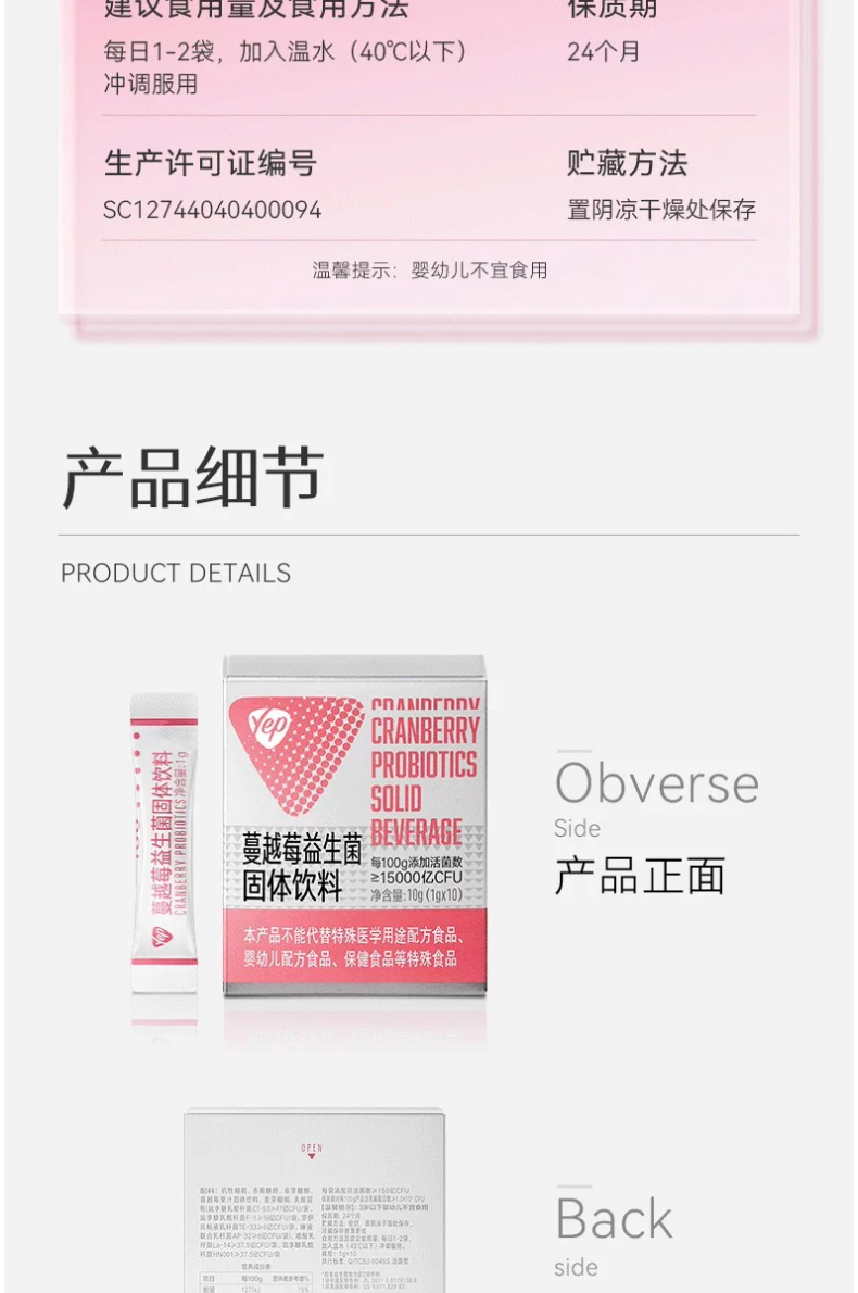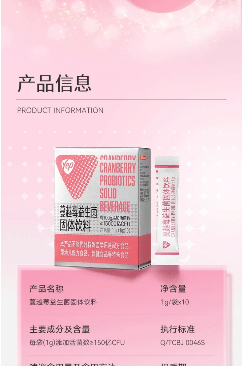 商品名称:(世星阳光)汤臣倍健 Yep蔓越莓益生菌固体饮料(150亿)(10袋)专利菌株组合呵护你的私密花园 3大私处优势菌关爱私密微生态