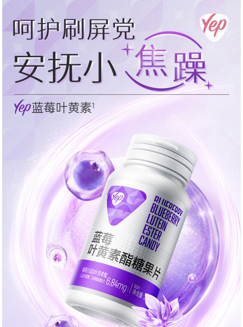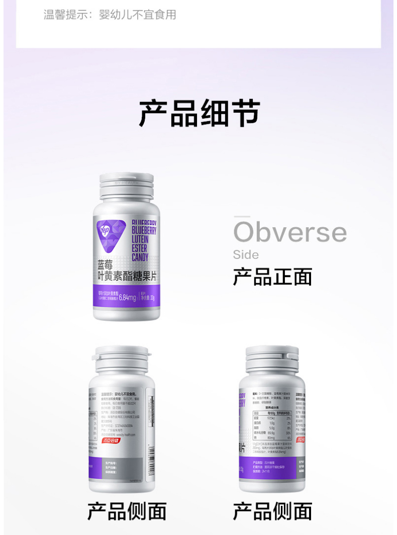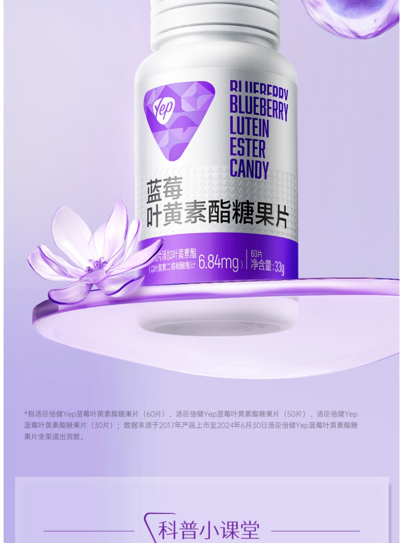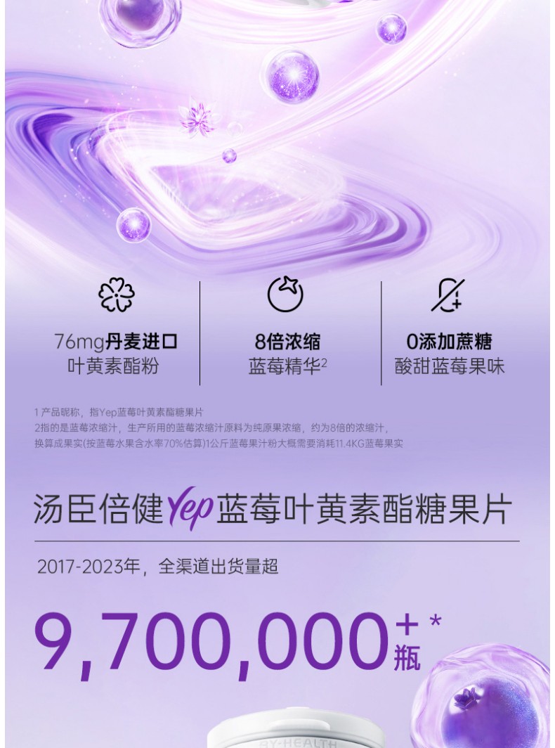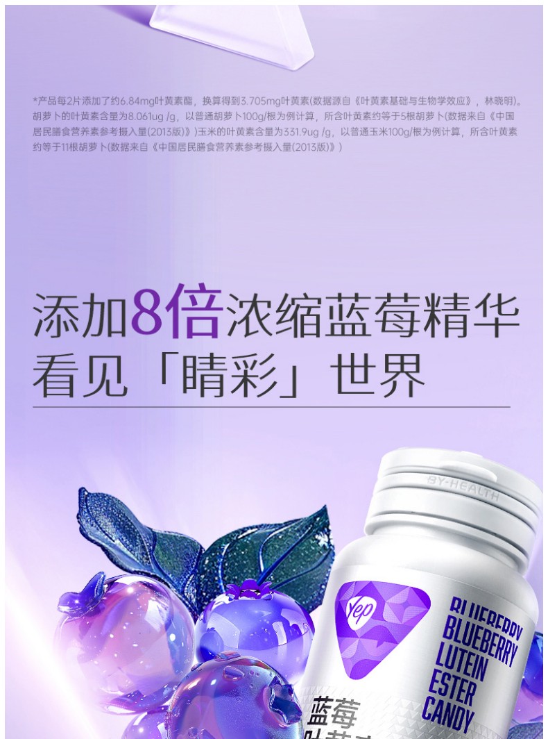 商品名称:(世星阳光)汤臣倍健 Yep蓝莓叶黄素酯糖果片60片 添加8倍浓缩蓝莓精华看见晴彩世界 1天2片全家好营养