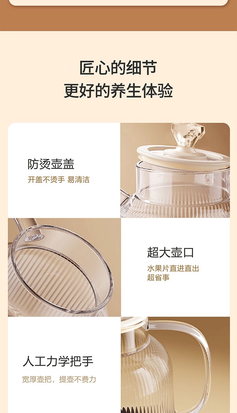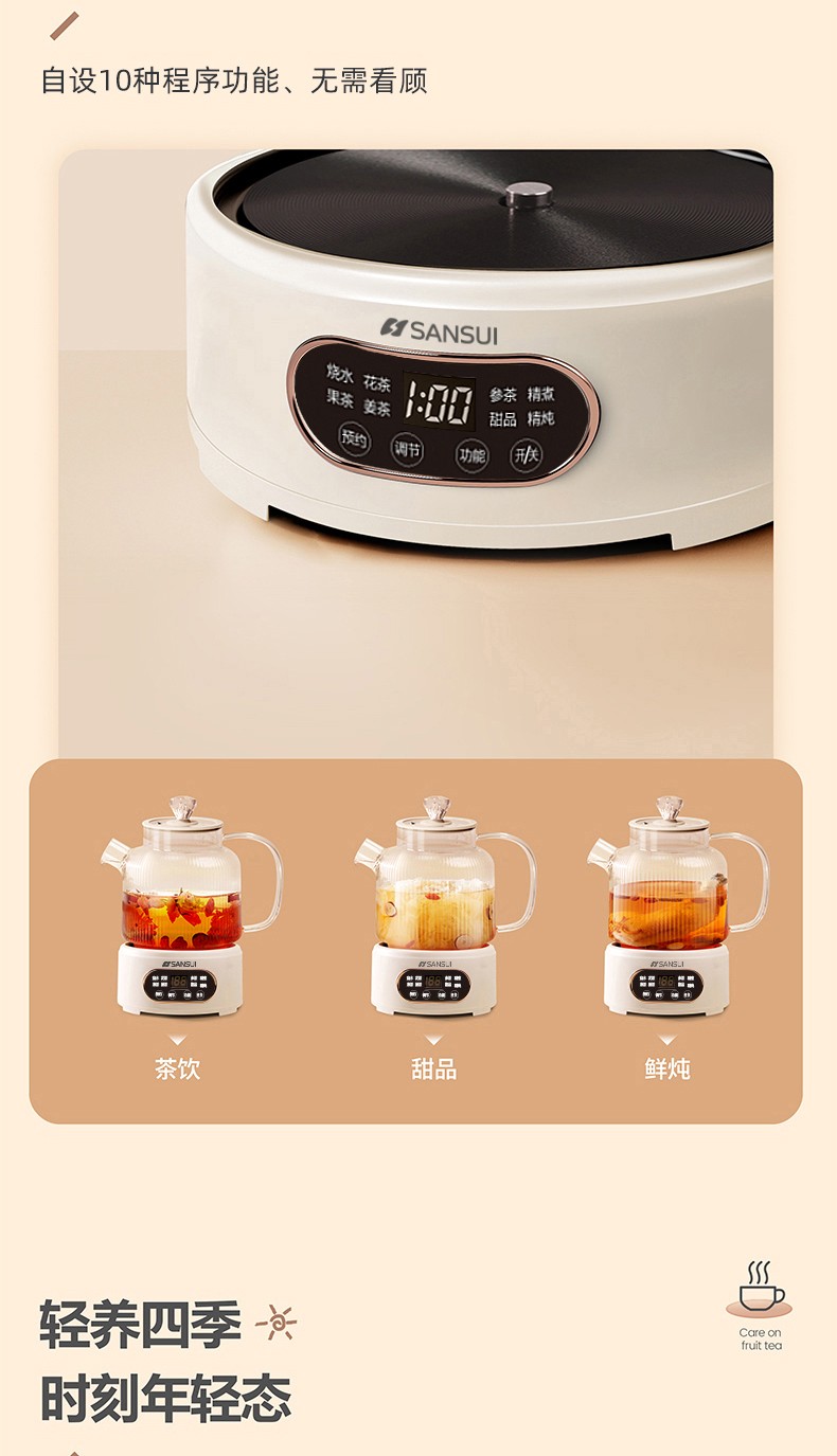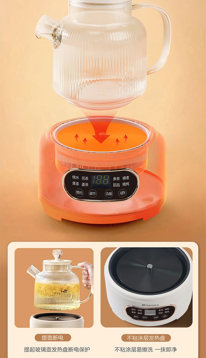 商品名称:(世星阳光)SANSUI山水 智能分体养生壶1L 白色 KT-1840 全玻璃养生多段炖煮 准确控温 健康煮水分体式玻璃壶 全玻璃壶身 无异味 无水垢 无糊底
