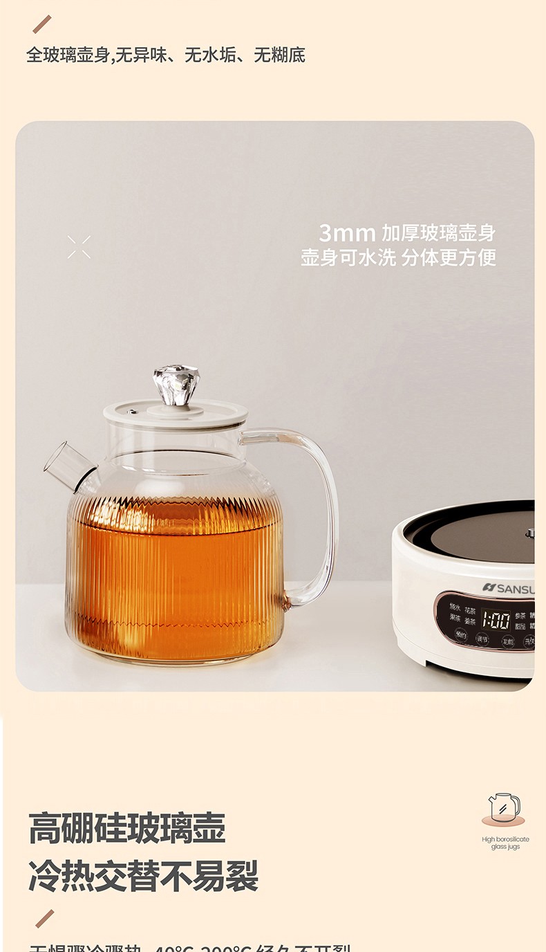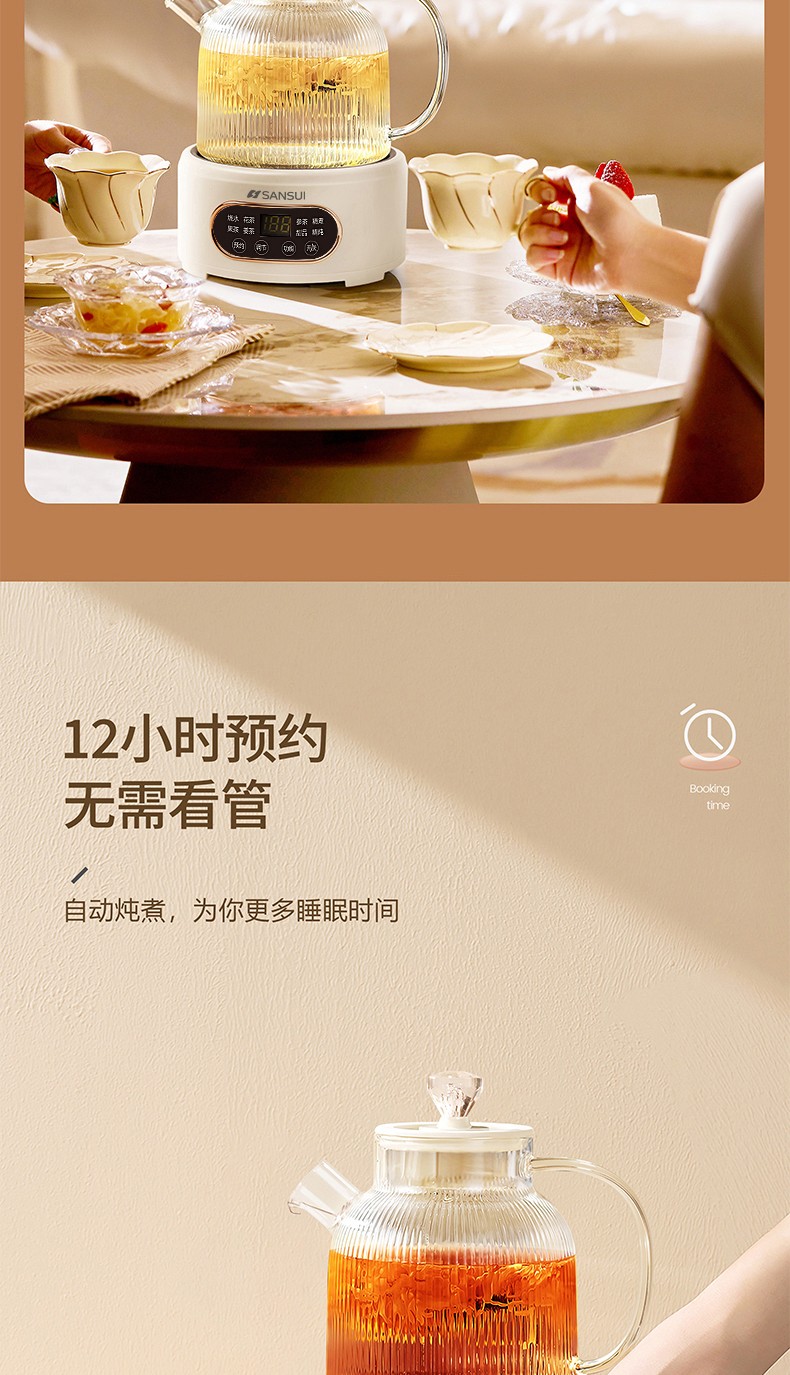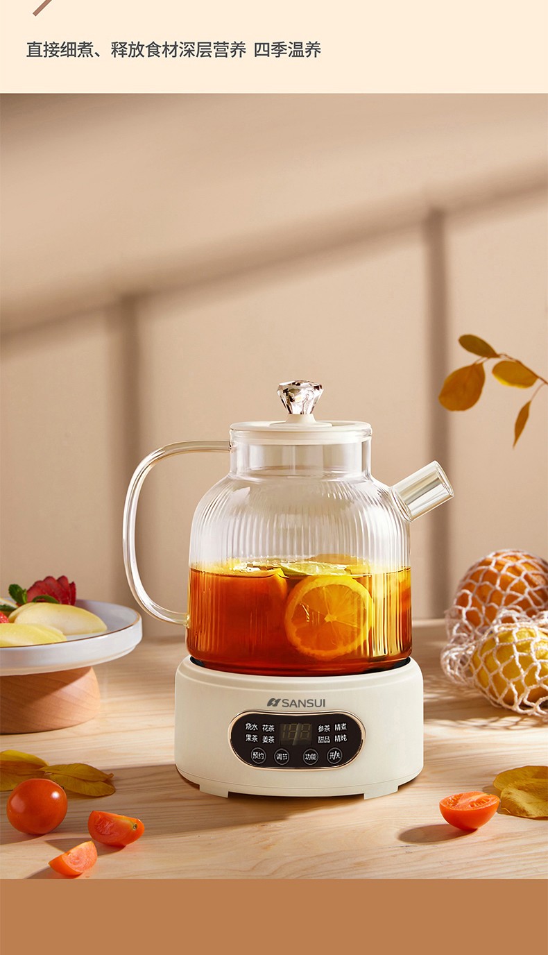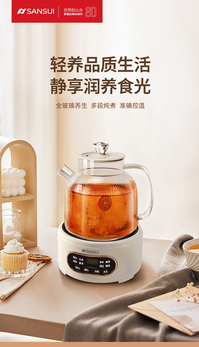 (世星阳光)SANSUI山水 智能分体养生壶1L 白色 KT-1840 全玻璃养生多段炖煮 准确控温 健康煮水分体式玻璃壶 全玻璃壶身 无异味 无水垢 无糊底