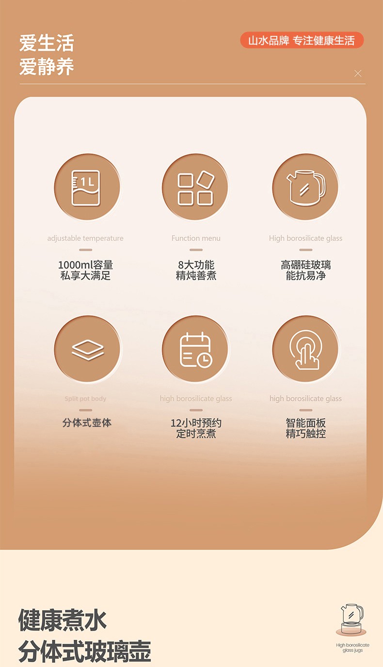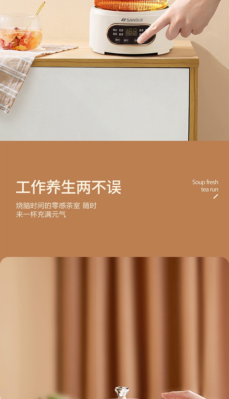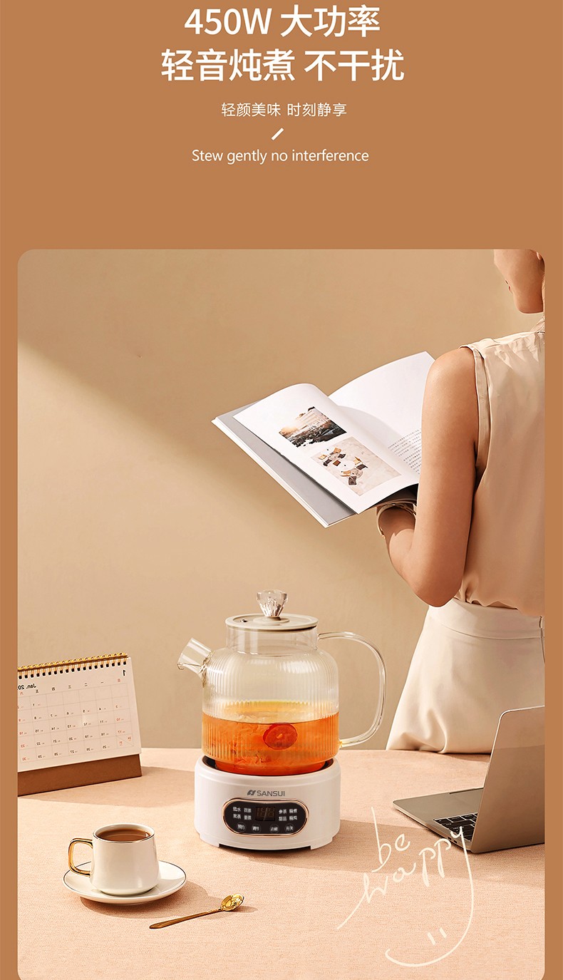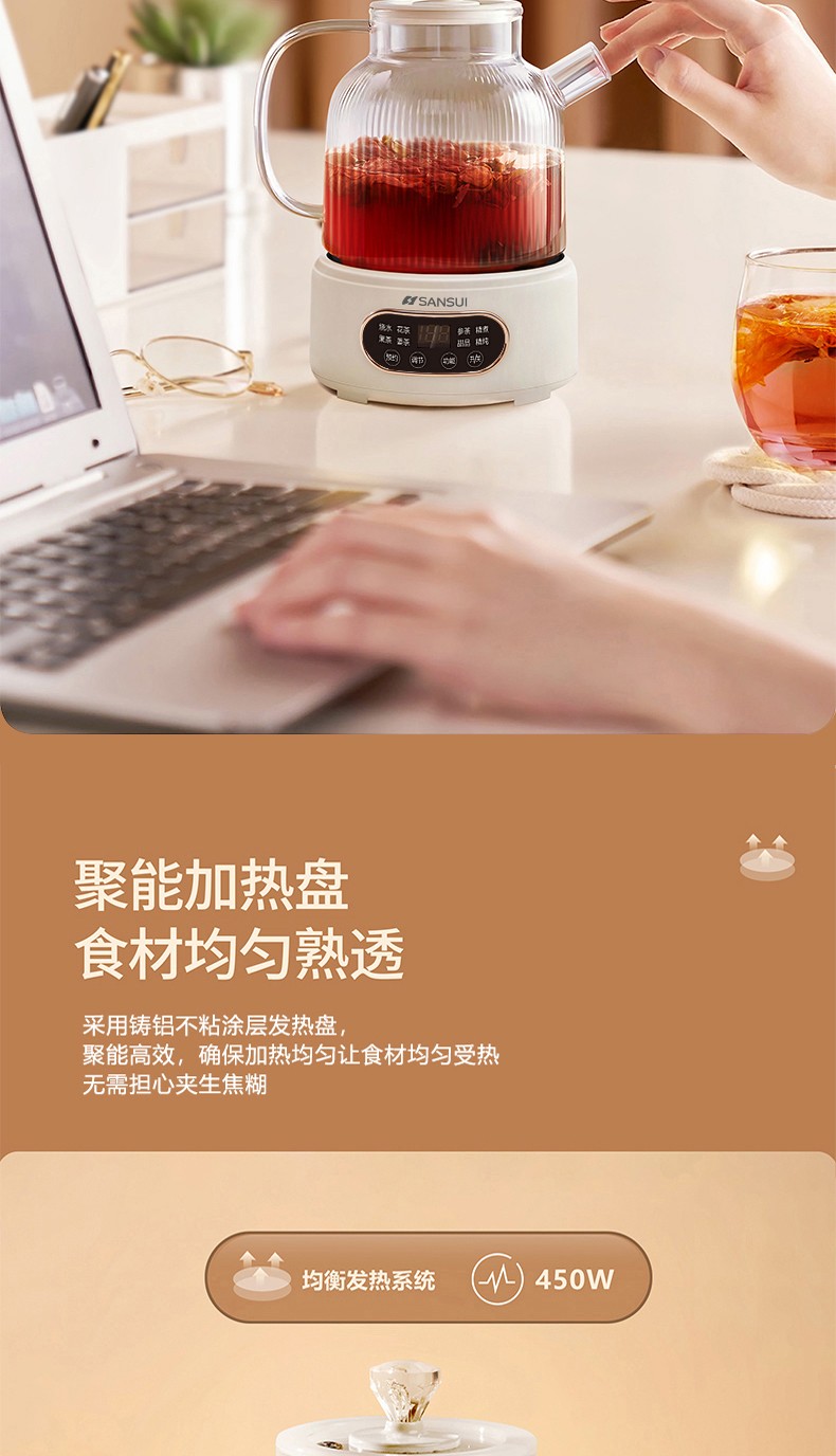 (世星阳光)SANSUI山水 智能分体养生壶1L 白色 KT-1840 全玻璃养生多段炖煮 准确控温 健康煮水分体式玻璃壶 全玻璃壶身 无异味 无水垢 无糊底