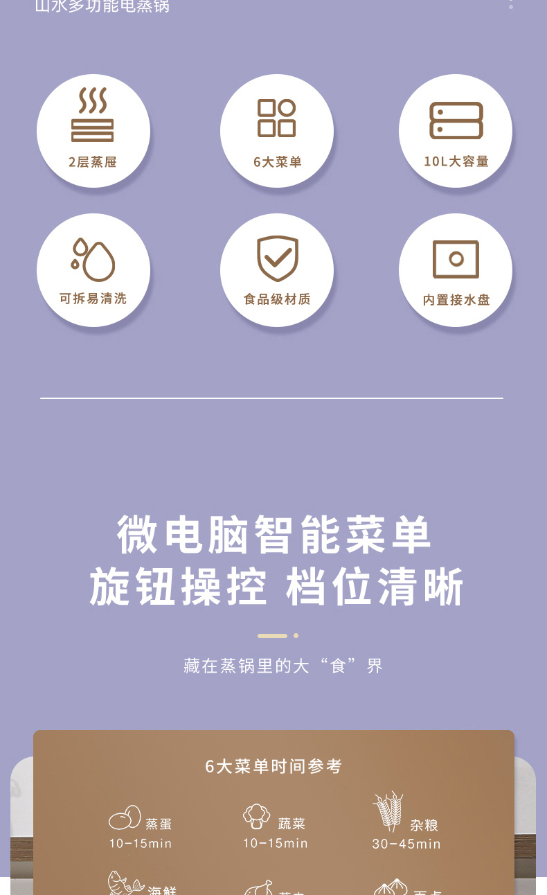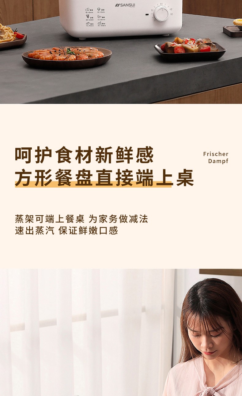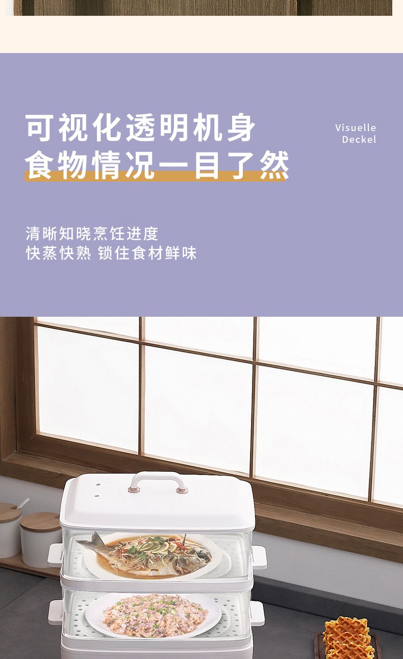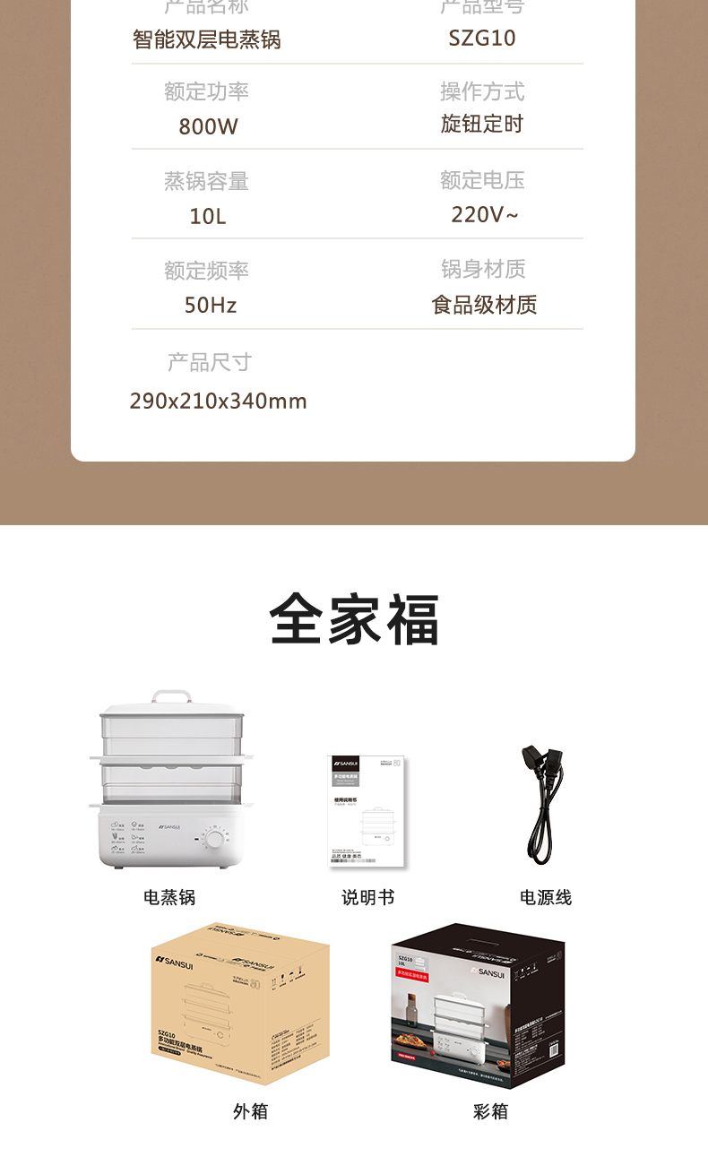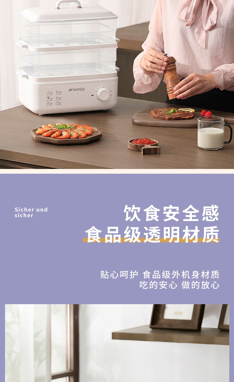 商品名称:(世星阳光)SANSUI山水 电蒸锅10L SZG10 白色 单双层随意切换 空间足够大展厨艺方形蒸盘设计 日常聚餐无压力 可视化透明机身食物情况一目了然