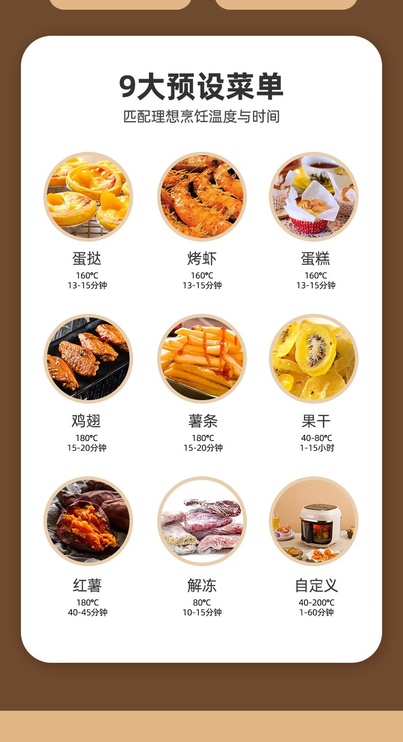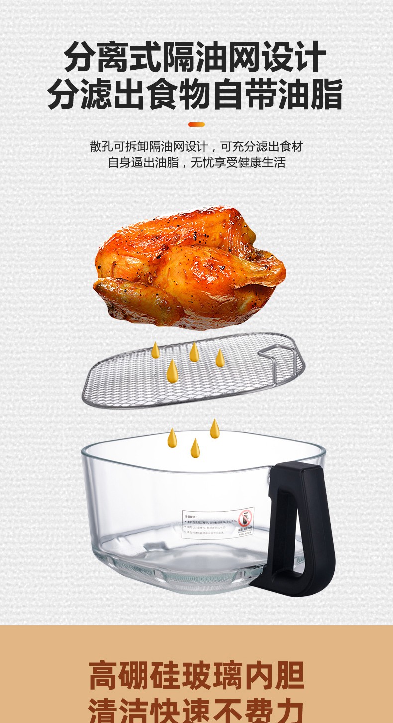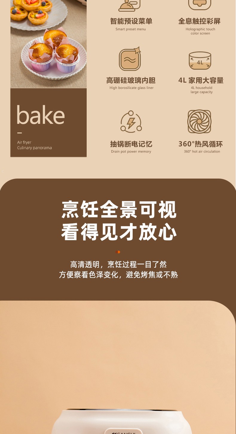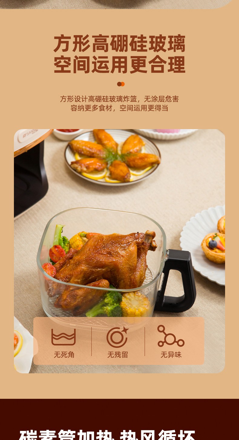 商品名称:(世星阳光)SANSUI山水 可视化空气炸锅 4.0L a27d棕色 烹饪全景可视看得见才放心 一步到位料理大份量食材 可烤炙完整